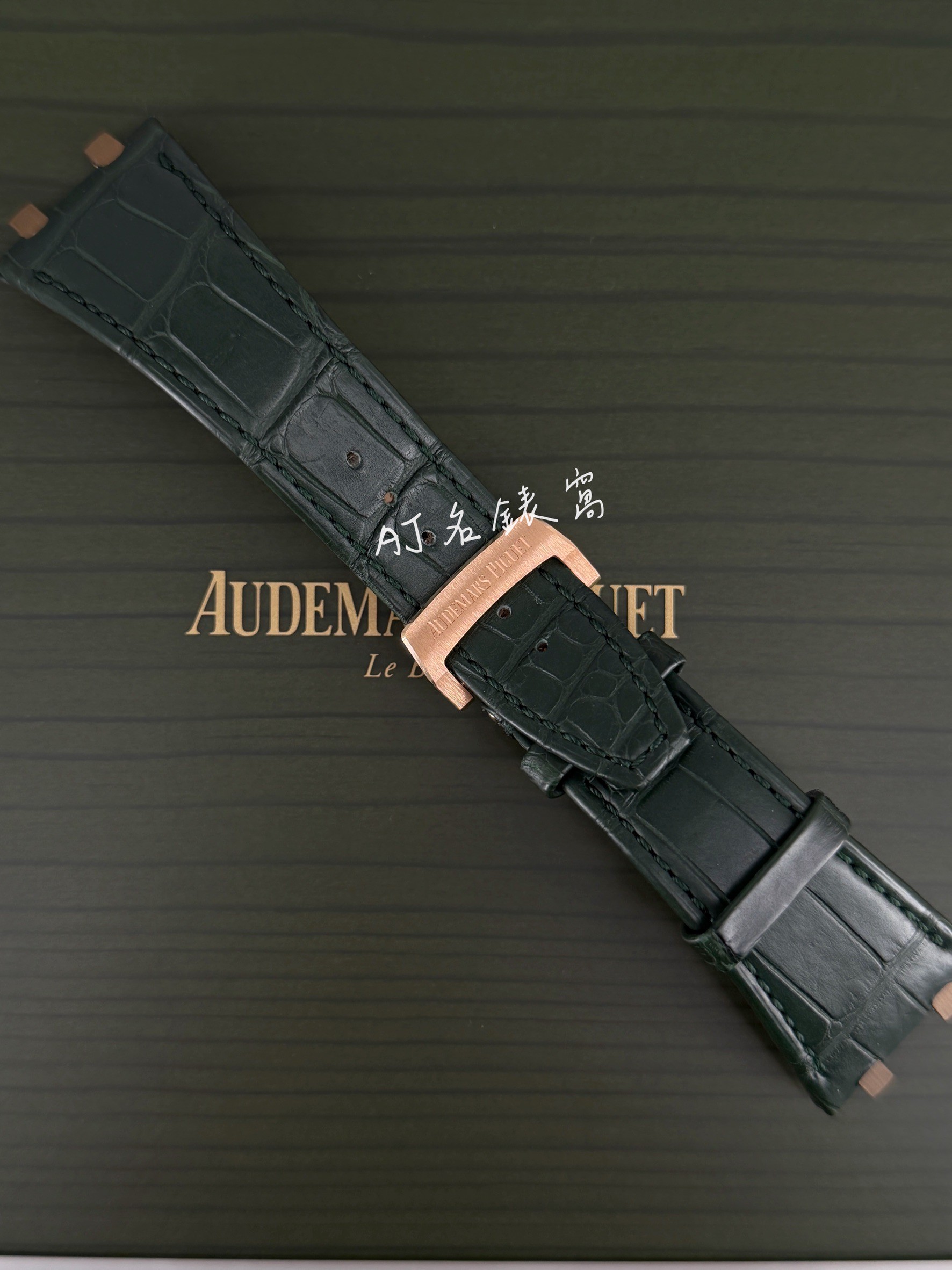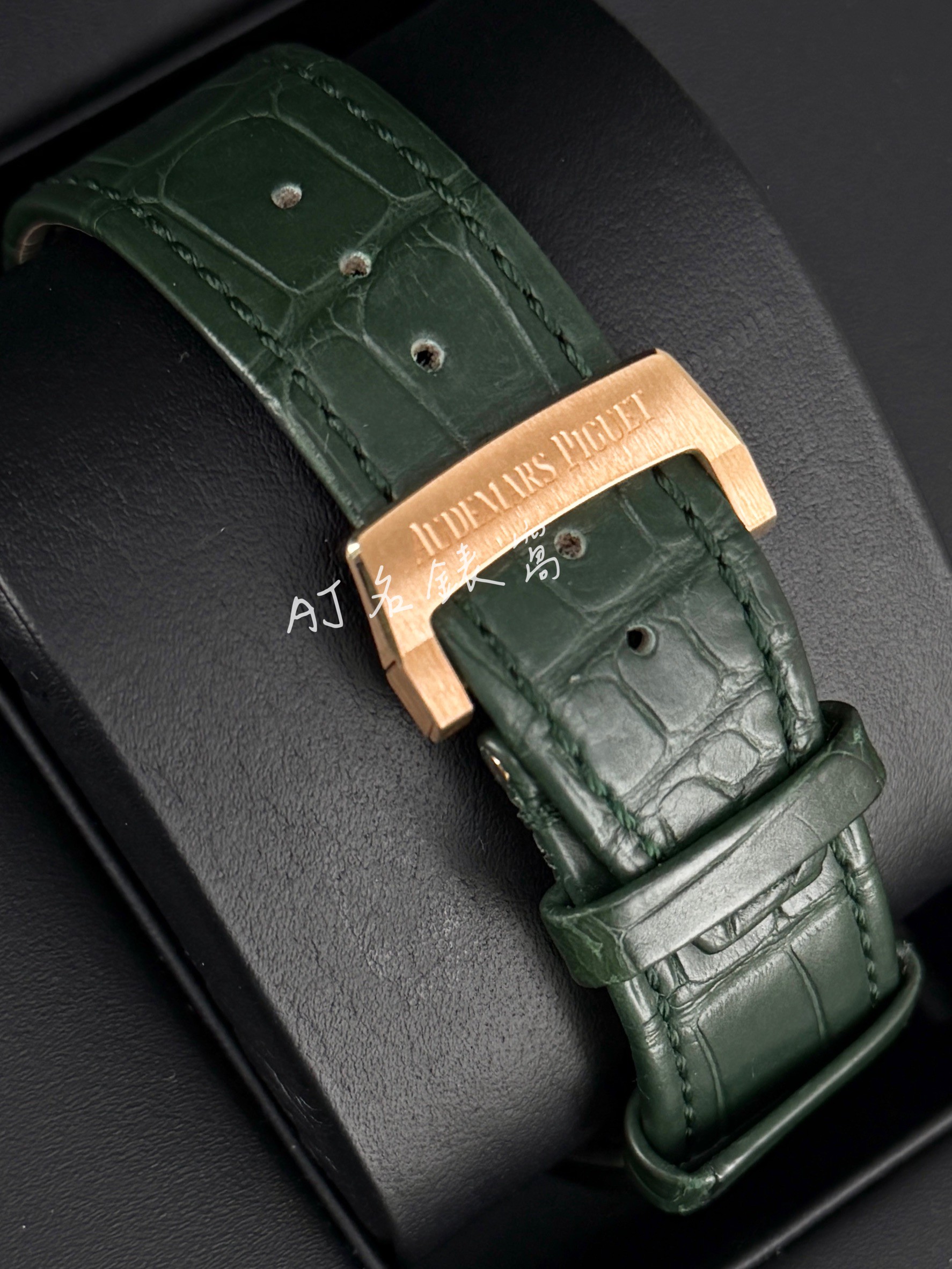 綠色皮錶帶搭配玫瑰金錶扣 |