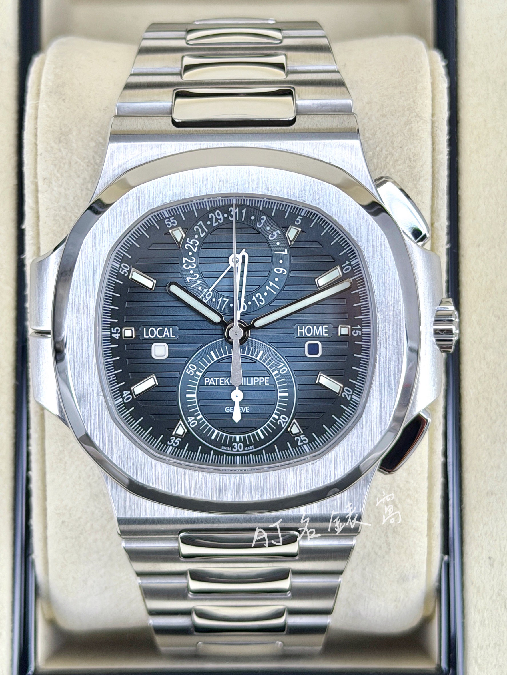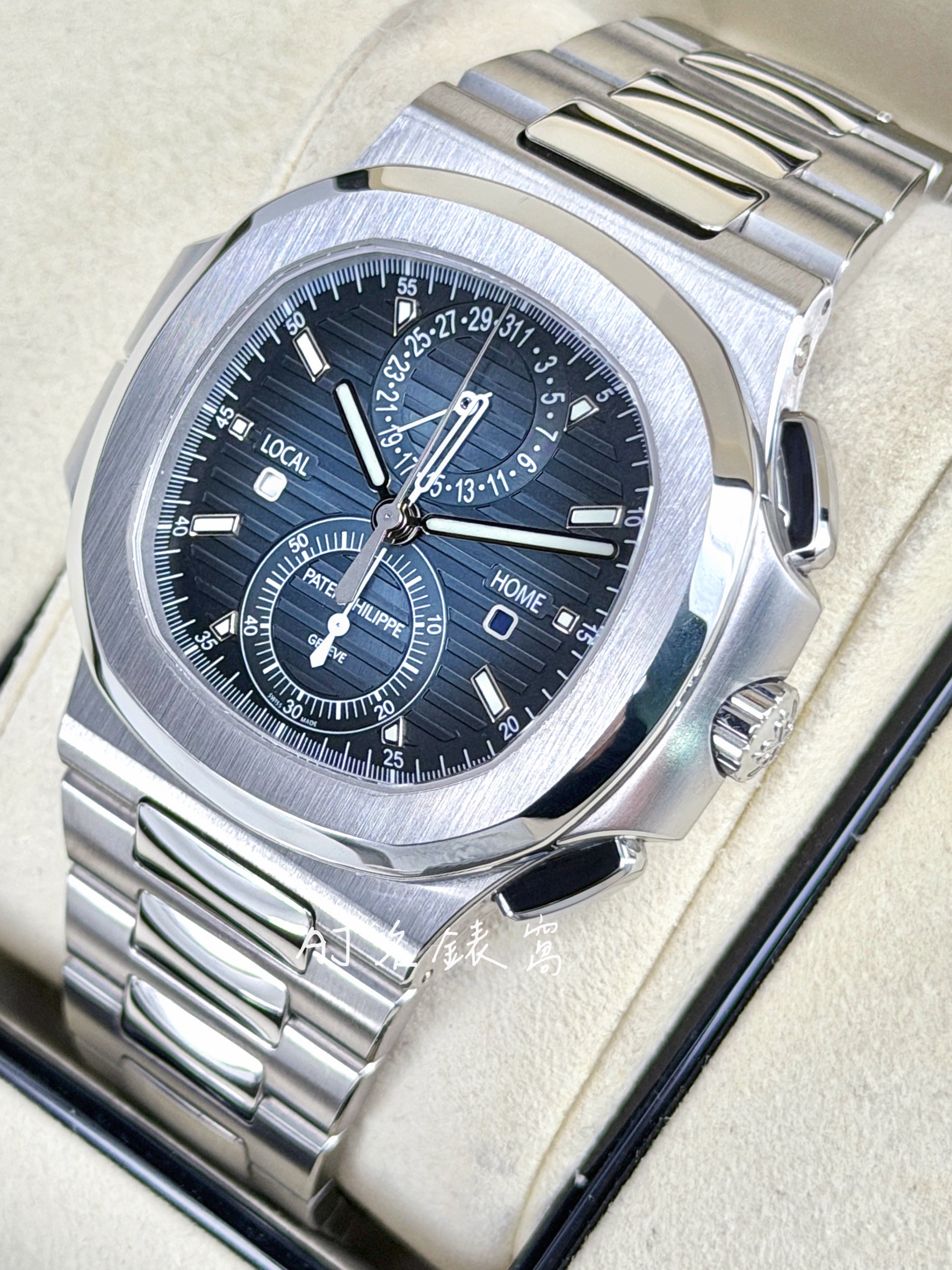 Patek Philippe 百達翡麗 PP錶 Nautilus 金鷹 5990/1A 自動上鏈 藍色漸層錶盤 兩地時間 飛返計時 2025年保單 錶徑40.5MM 新扣可微調 二手美品