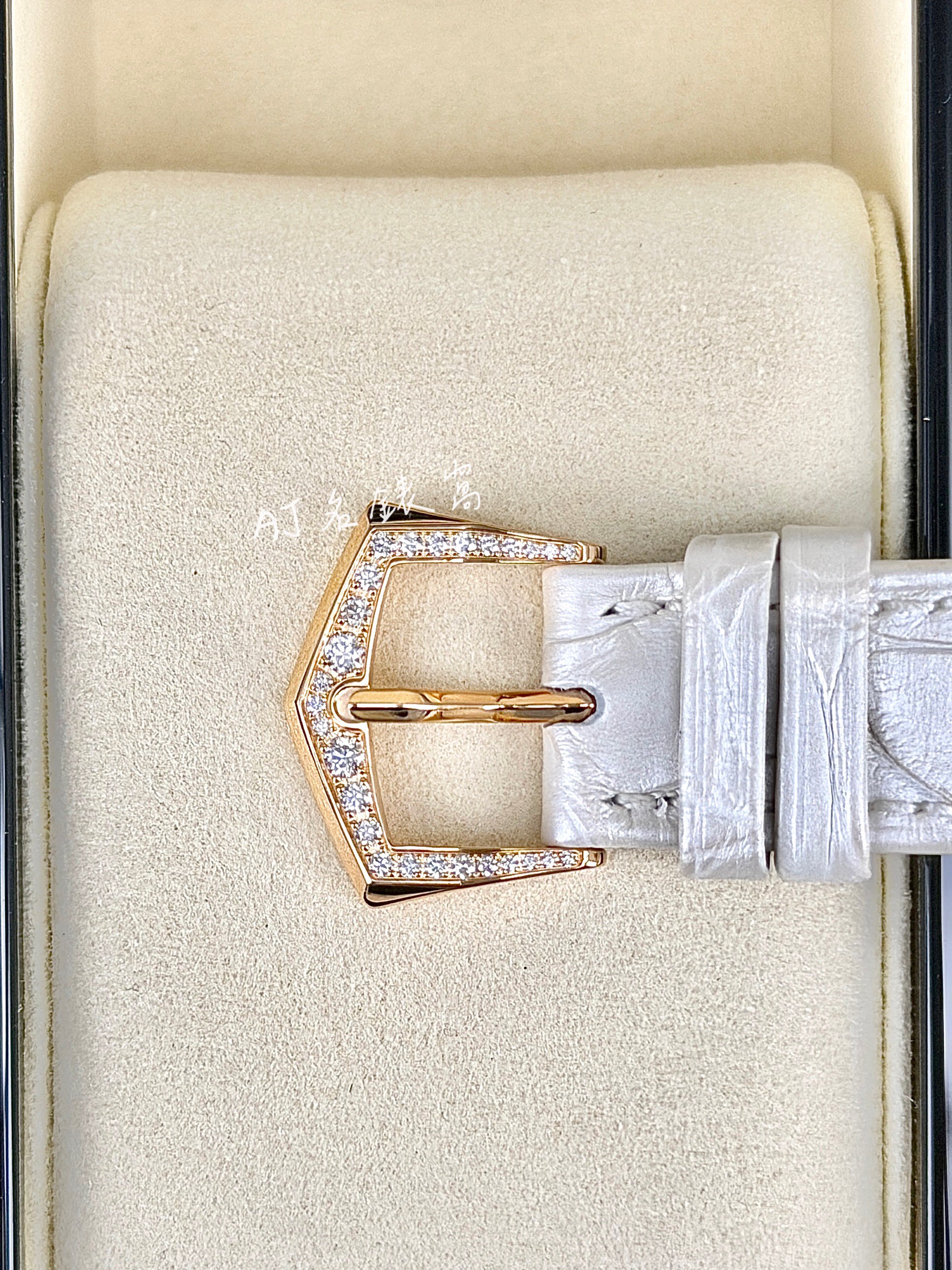 .錶殼鑲嵌347顆鑽石(~2.65克拉).錶冠鑲嵌14顆鑽石(~0.06克拉).錶扣鑲嵌27顆鑽石(~0.21克拉)