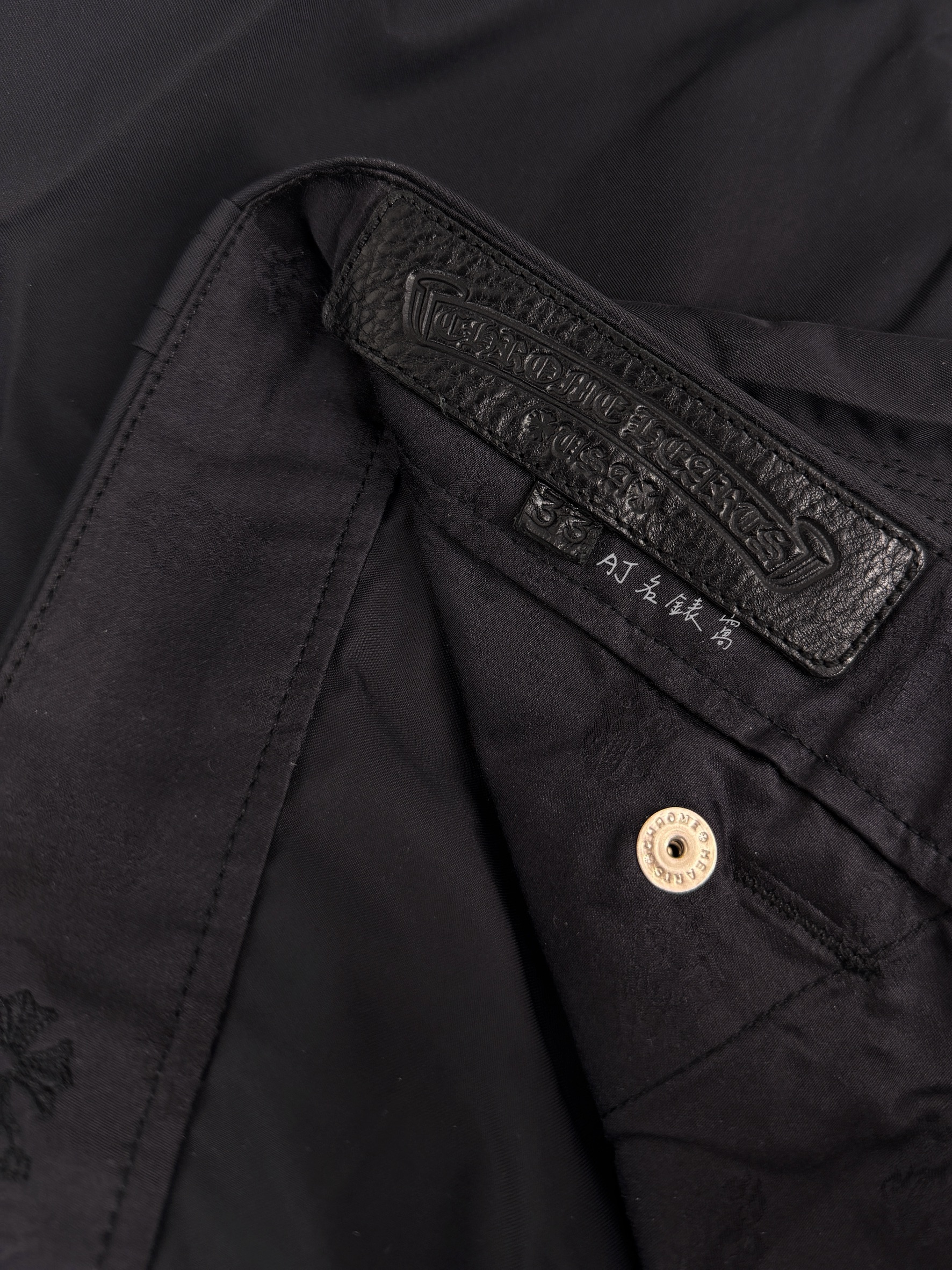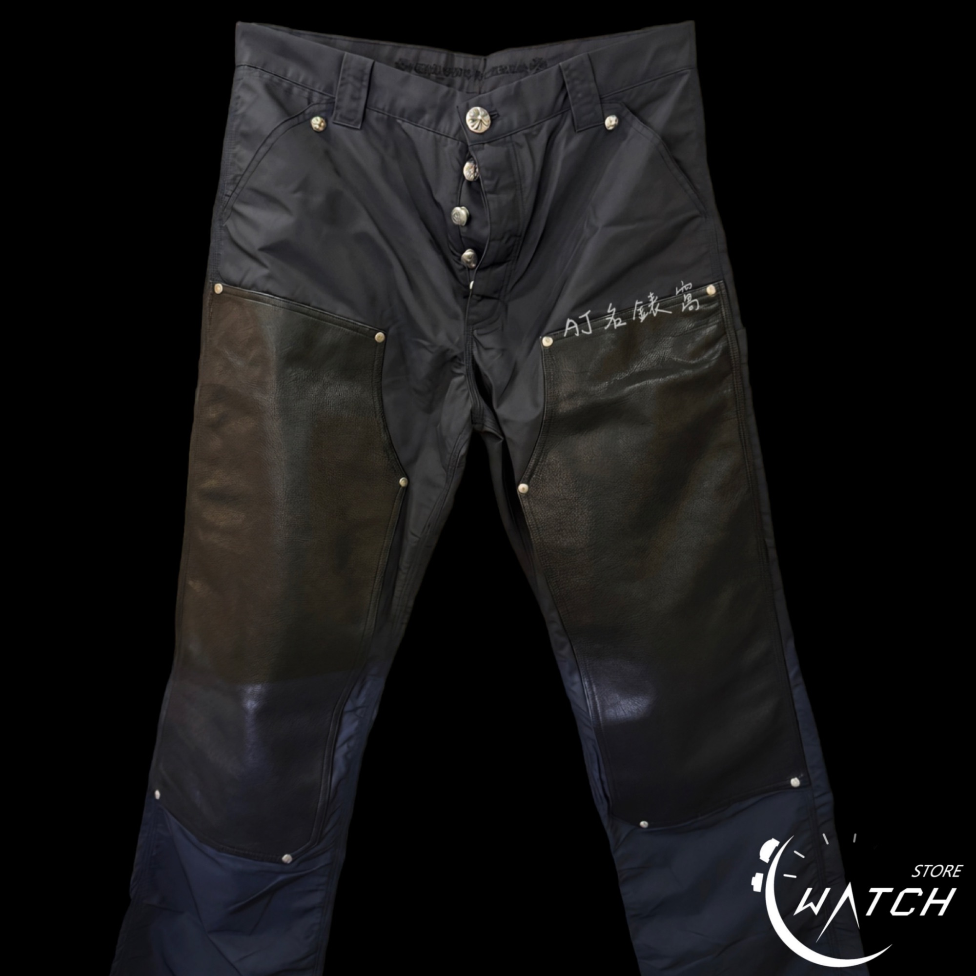 十字球扣褲子雙膝皮革尼龍黑色工裝褲 33碼