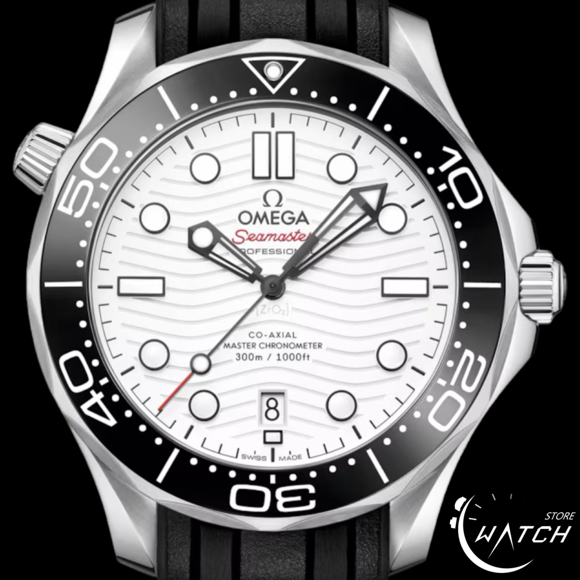 OMEGA 歐米茄 Seamaster 海馬系列 210.32.42.20.04.001 白色波浪紋陶瓷面盤 黑色陶瓷錶圈 同軸擒縱 2026年保單 二手美品 橡膠錶帶 專業潛水錶 自動上鍊 42mm