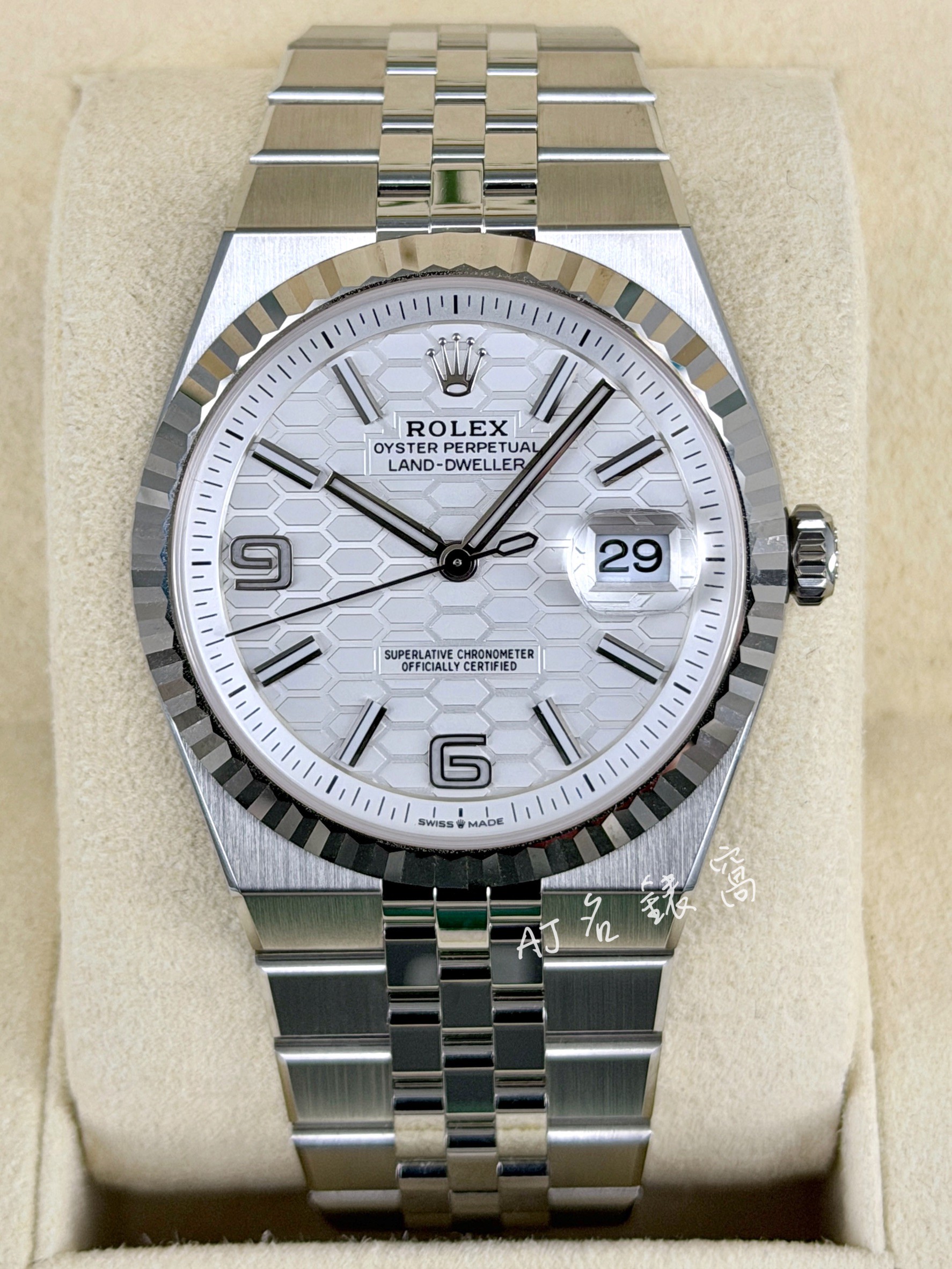 ROLEX 勞力士 Land-Dweller 40 陸行者 127334 醇白色蜂巢錶面 不鏽鋼 最新7135型機芯 透明錶背 2026年3月保卡 未使用品 台灣公司貨 纖薄紀念型錶帶 40mm