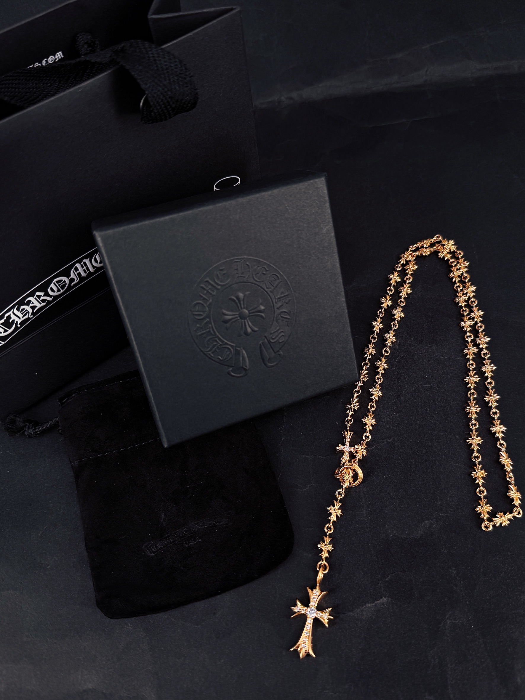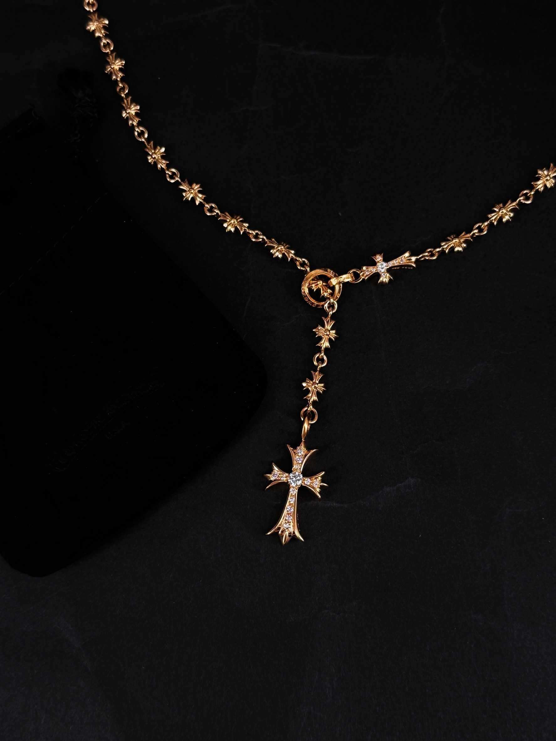 22K Tiny E 一體式項鍊 雙面白鑽 60cm