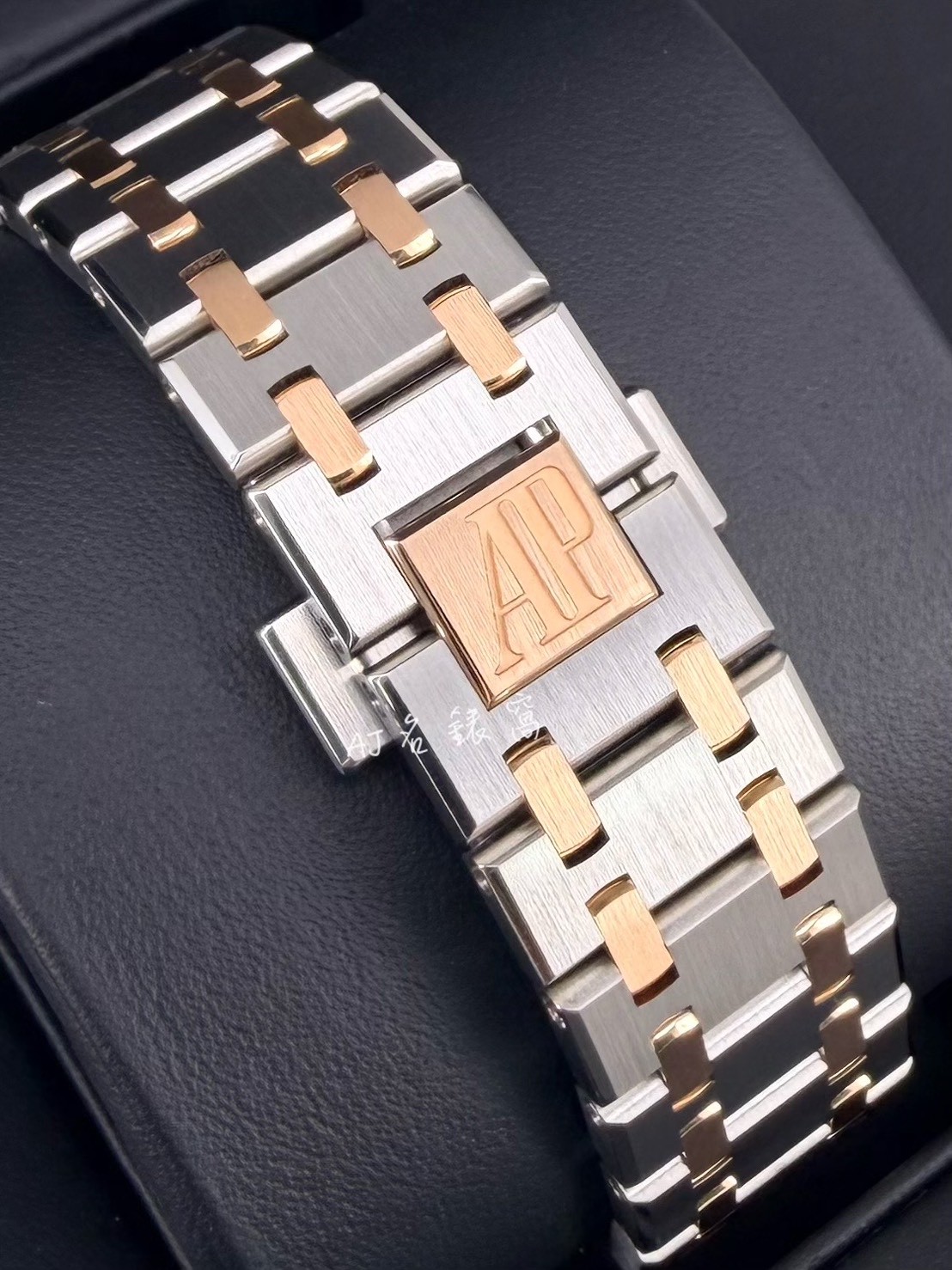 精鋼+18K玫瑰金材質錶帶、摺疊扣 |