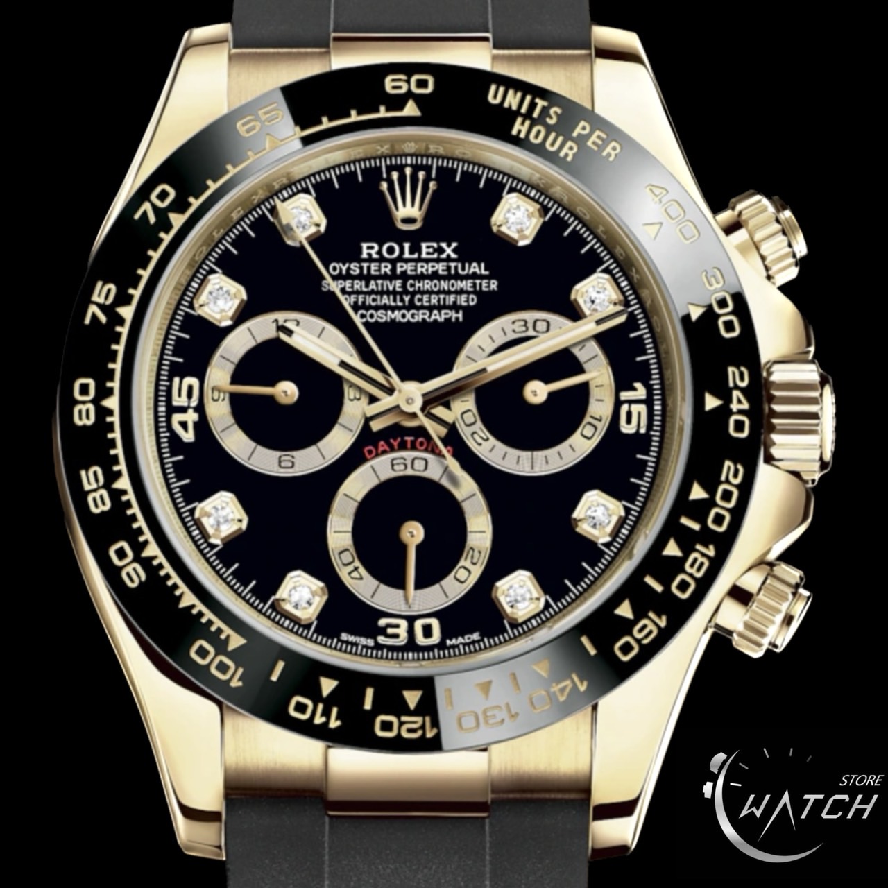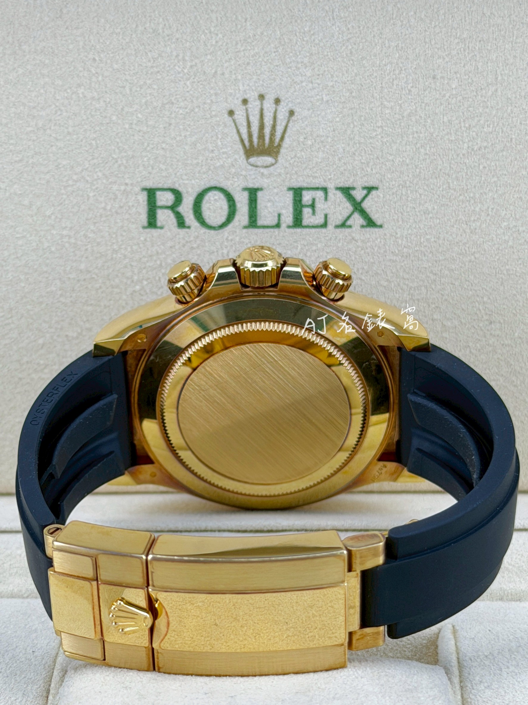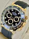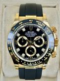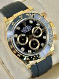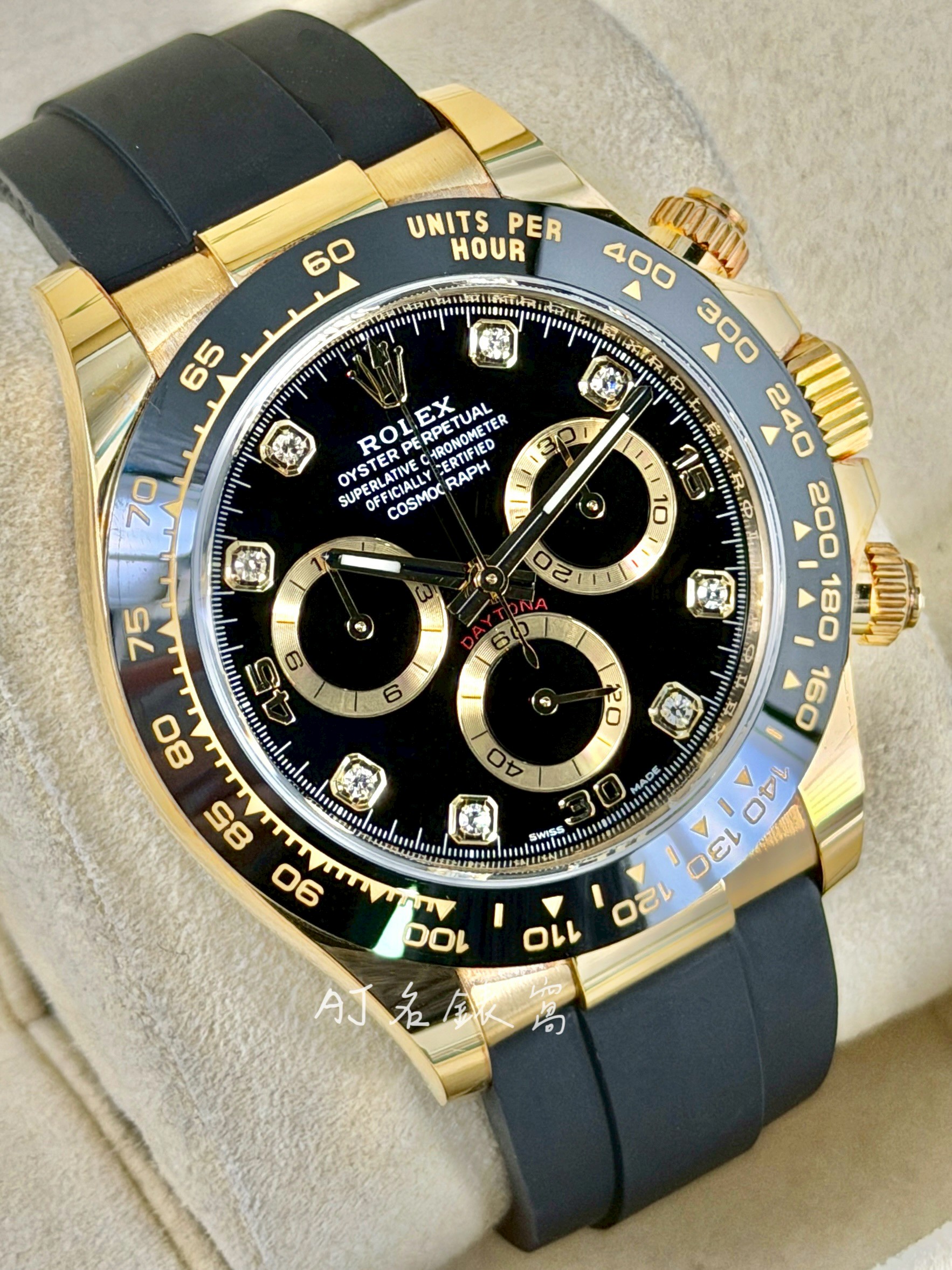 OYSTER PERPETUAL COSMOGRAPH DAYTONA 腕錶18K黃金款 搭配鑲鑽黑色錶面及OYSTERFLEX錶帶 黑色CERACHROM外圈設測速計 16518G 新款閃圈 2021年保單 二手美品