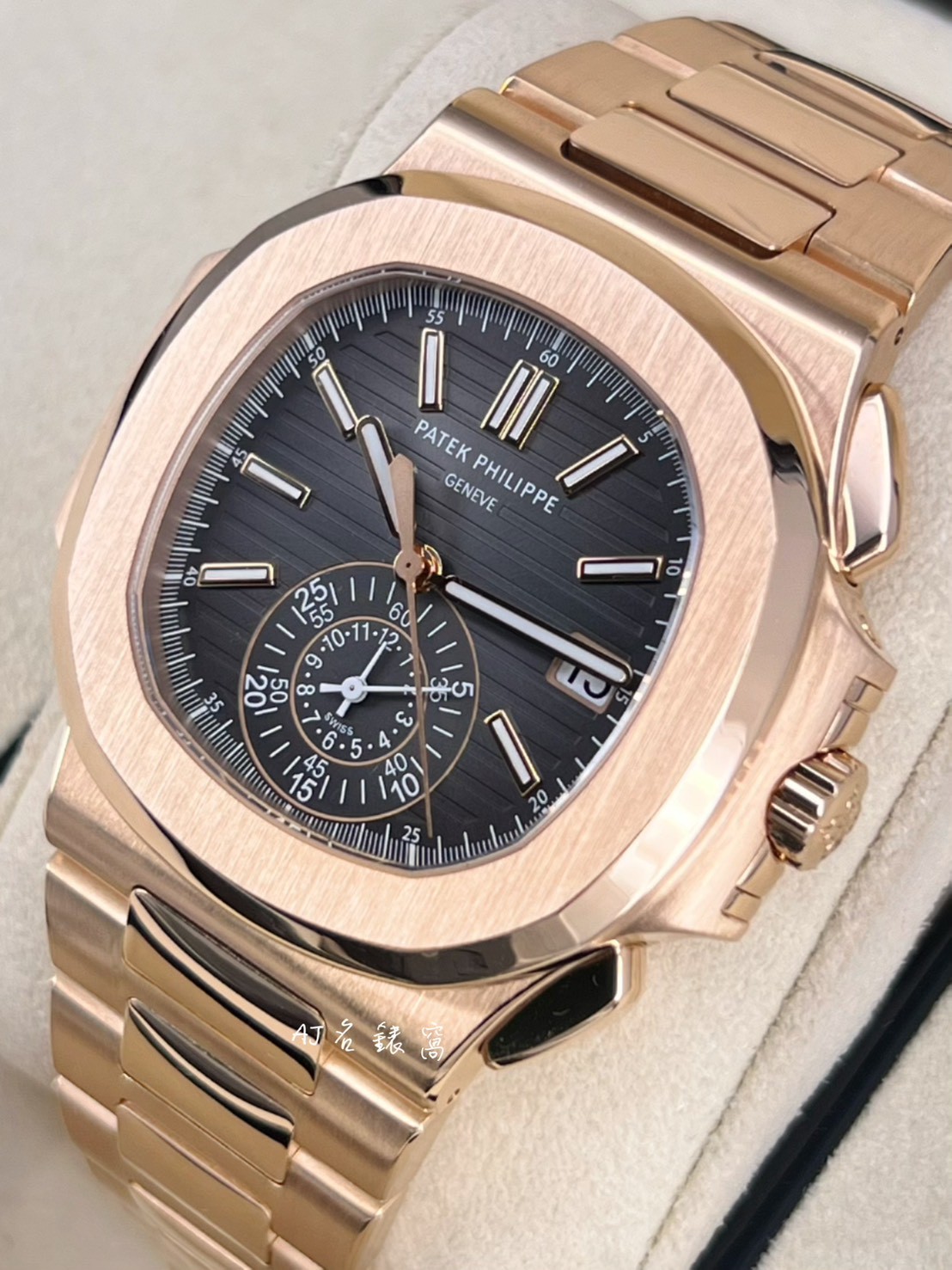 Patek Philippe 百達翡麗 PP錶 Nautilus 金鷹 5980/1R 玫瑰金材質 自動上鏈 黑色漸層錶盤 稀有釋出 已停產 錶徑40.5MM 2020年保單 二手美品