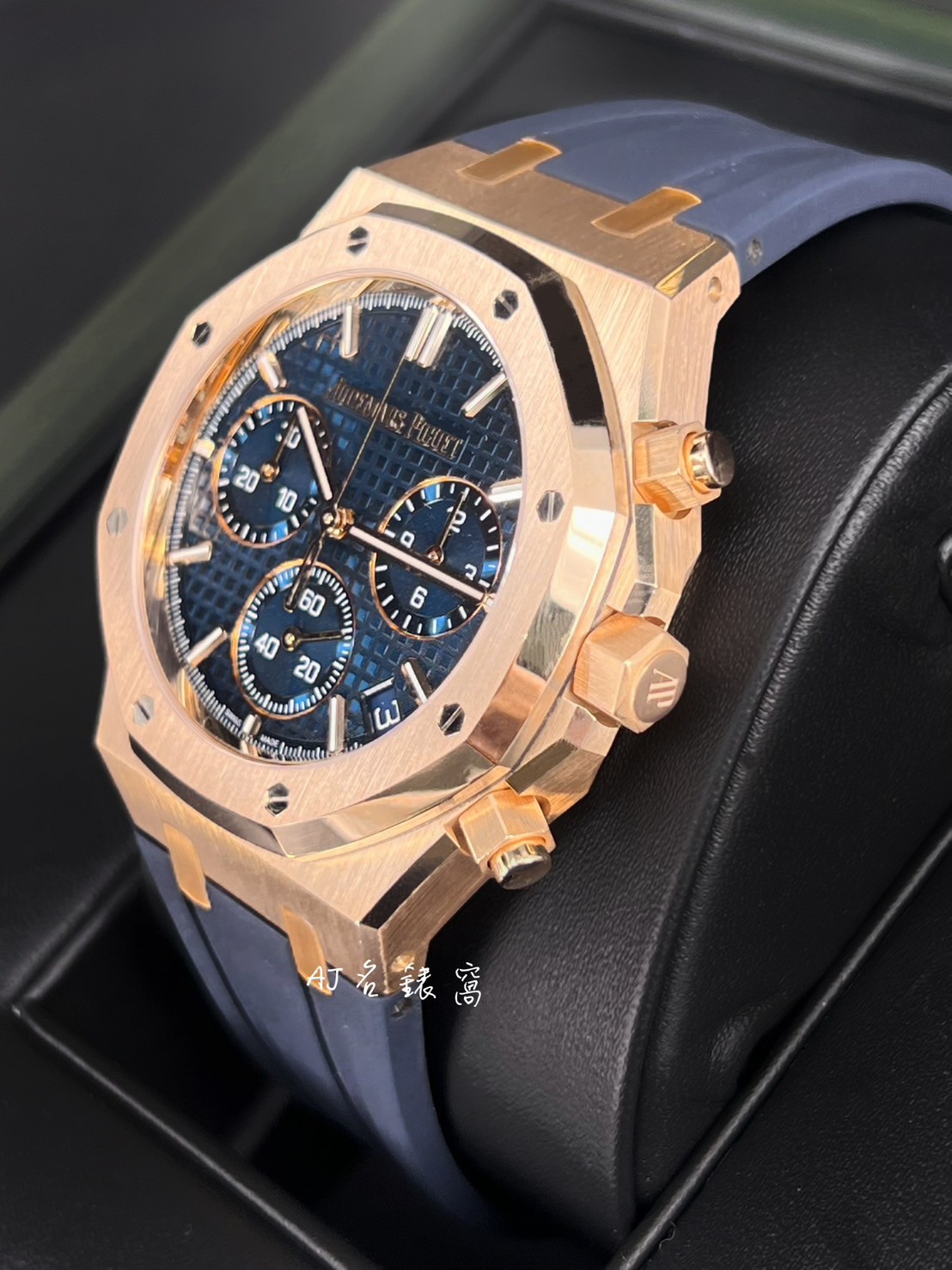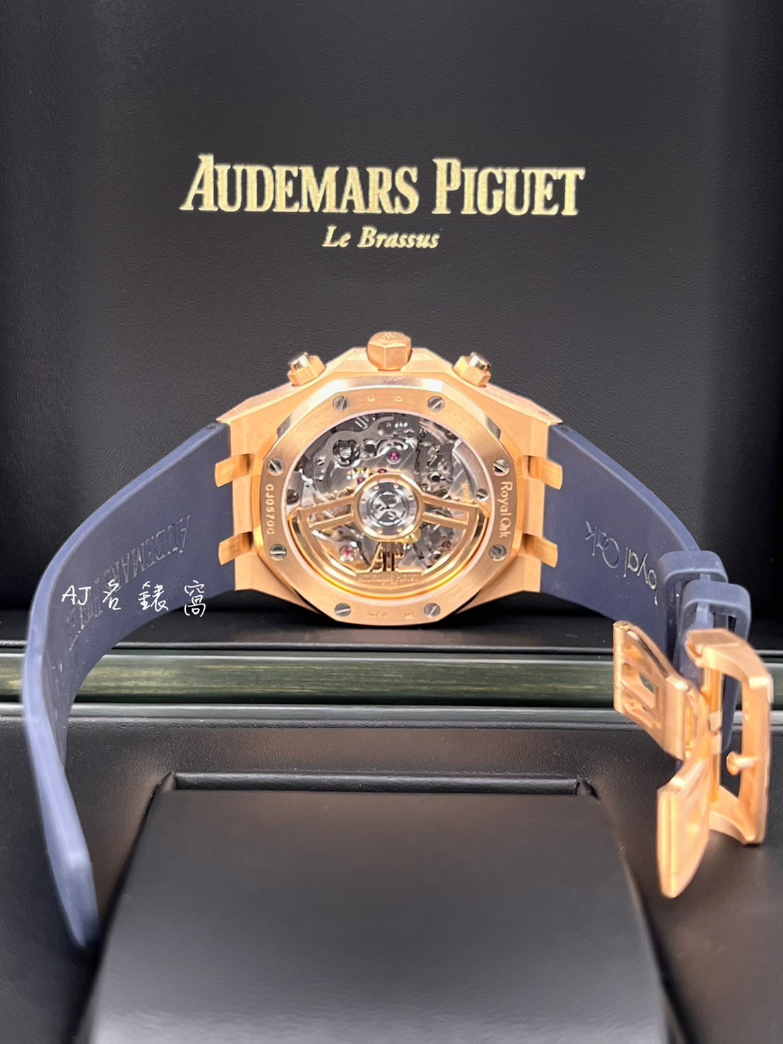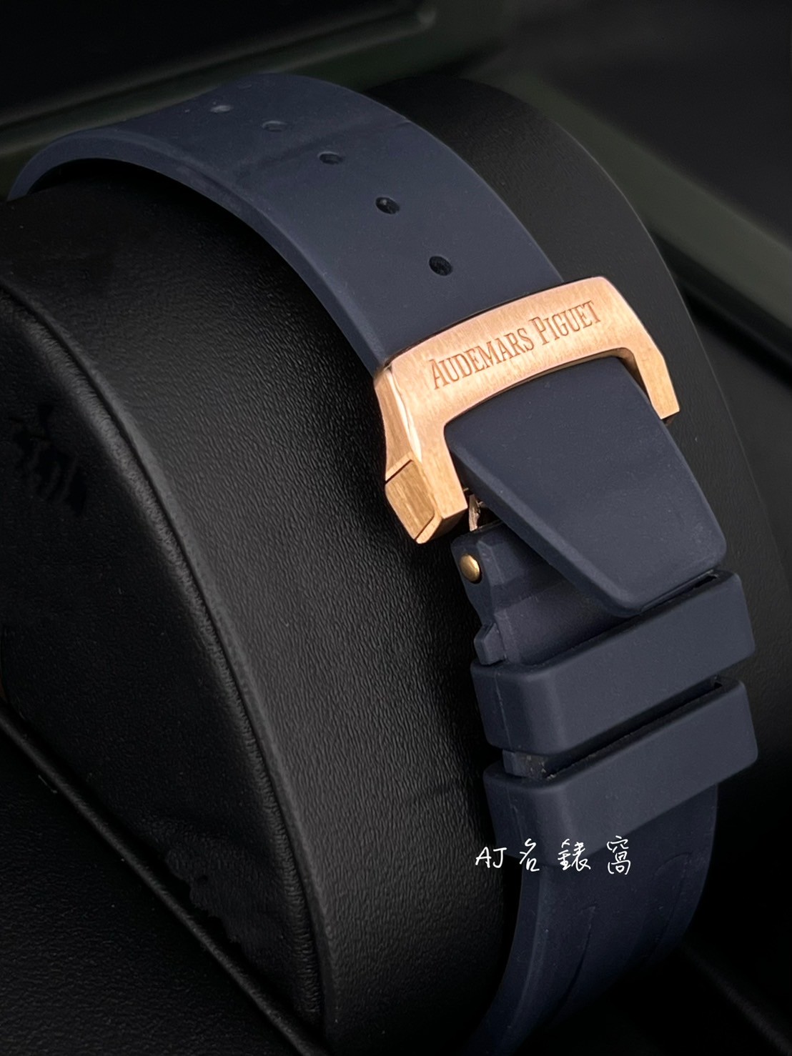 Royal Oak 皇家橡樹 26240OR 橡膠錶帶 18K玫瑰錶殼搭配藍色面