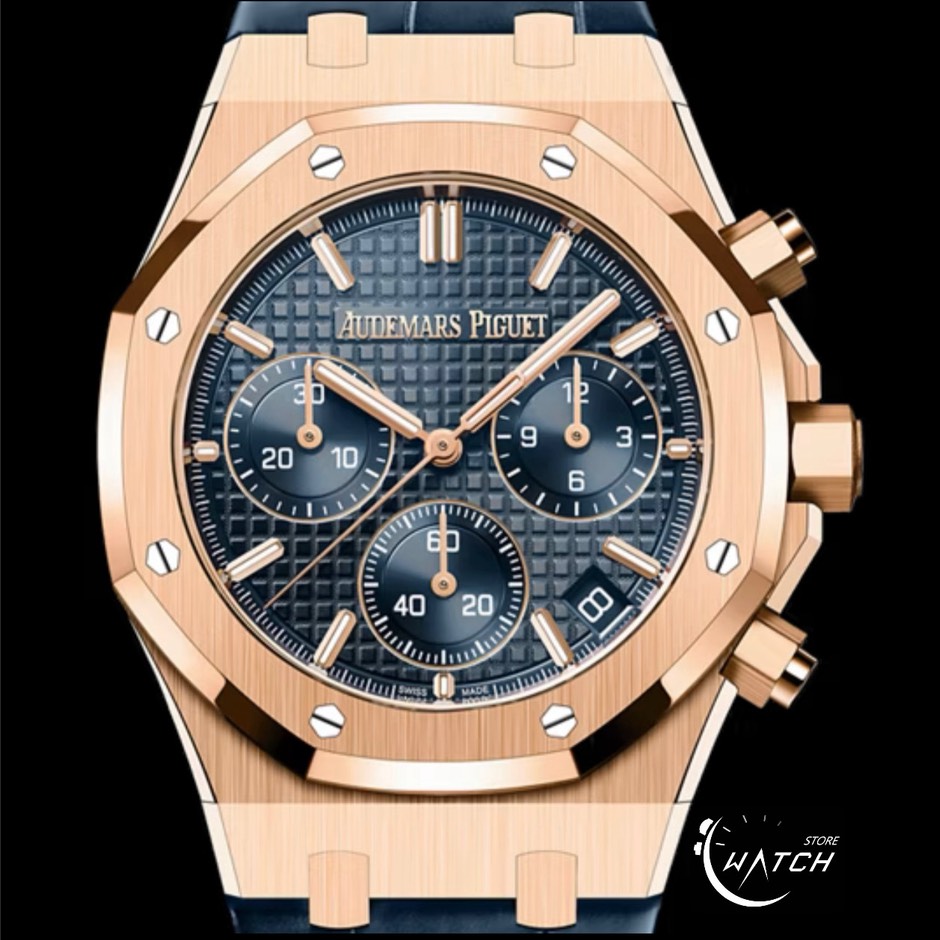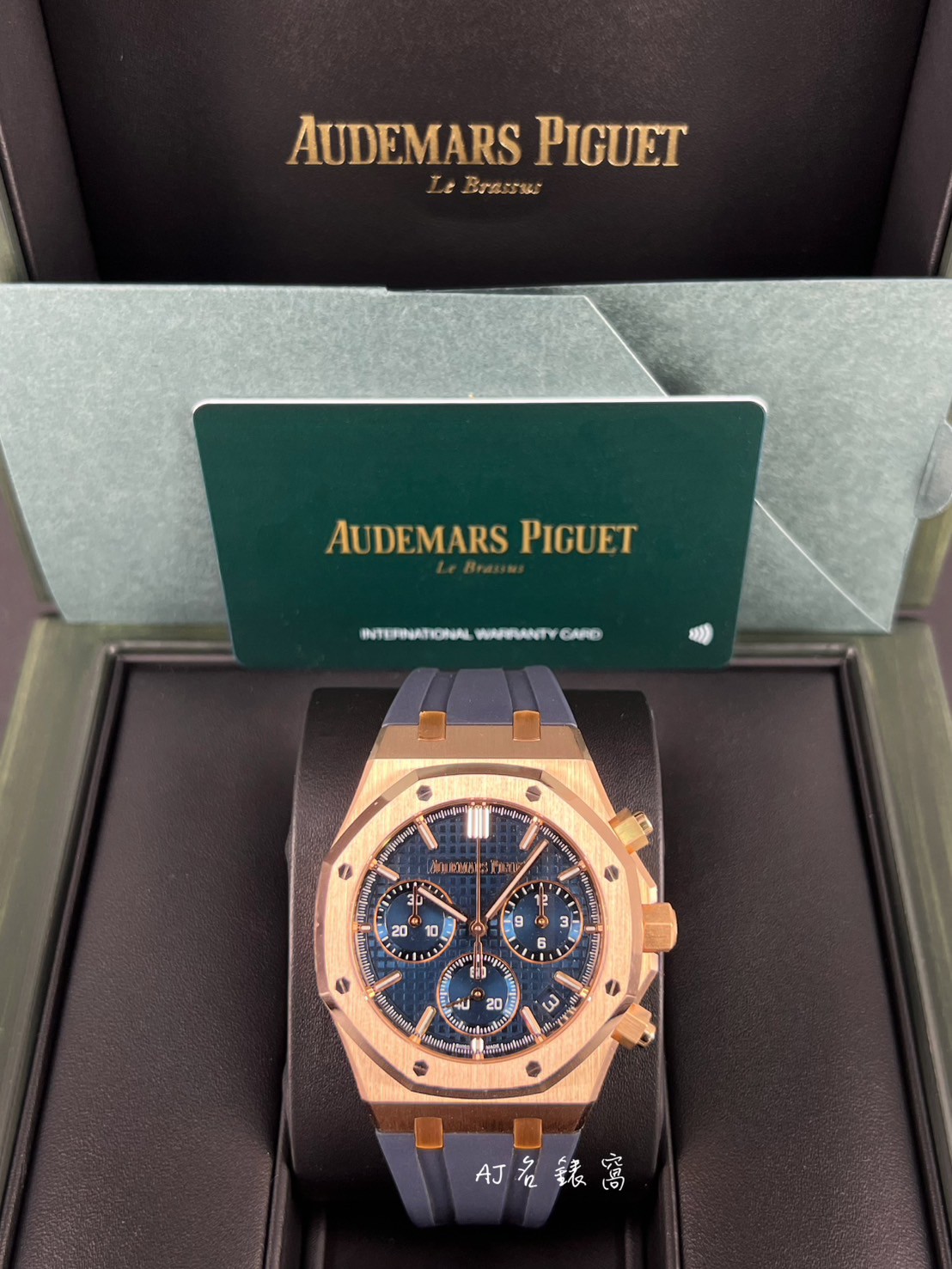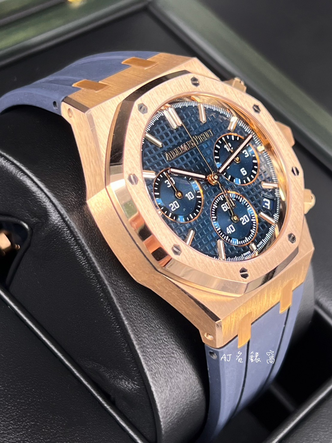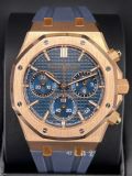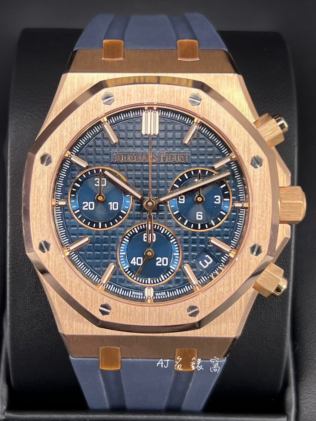 Royal Oak 皇家橡樹 26240OR 橡膠錶帶 18K玫瑰錶殼搭配藍色面