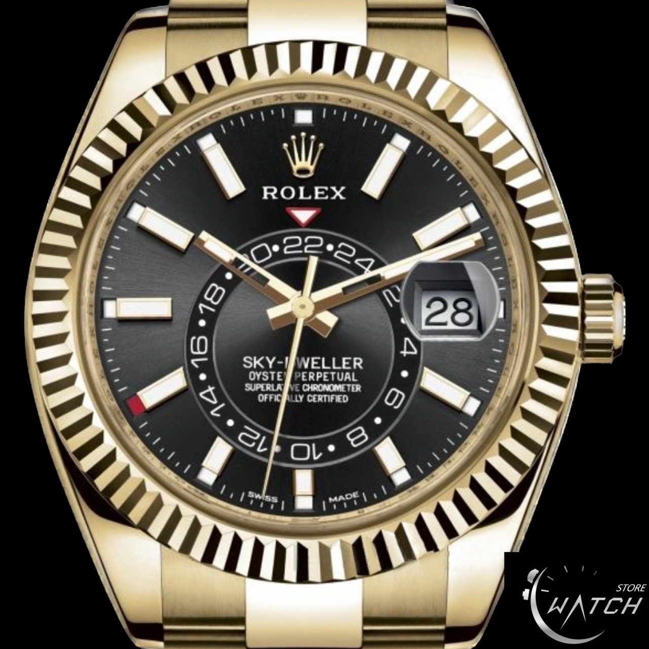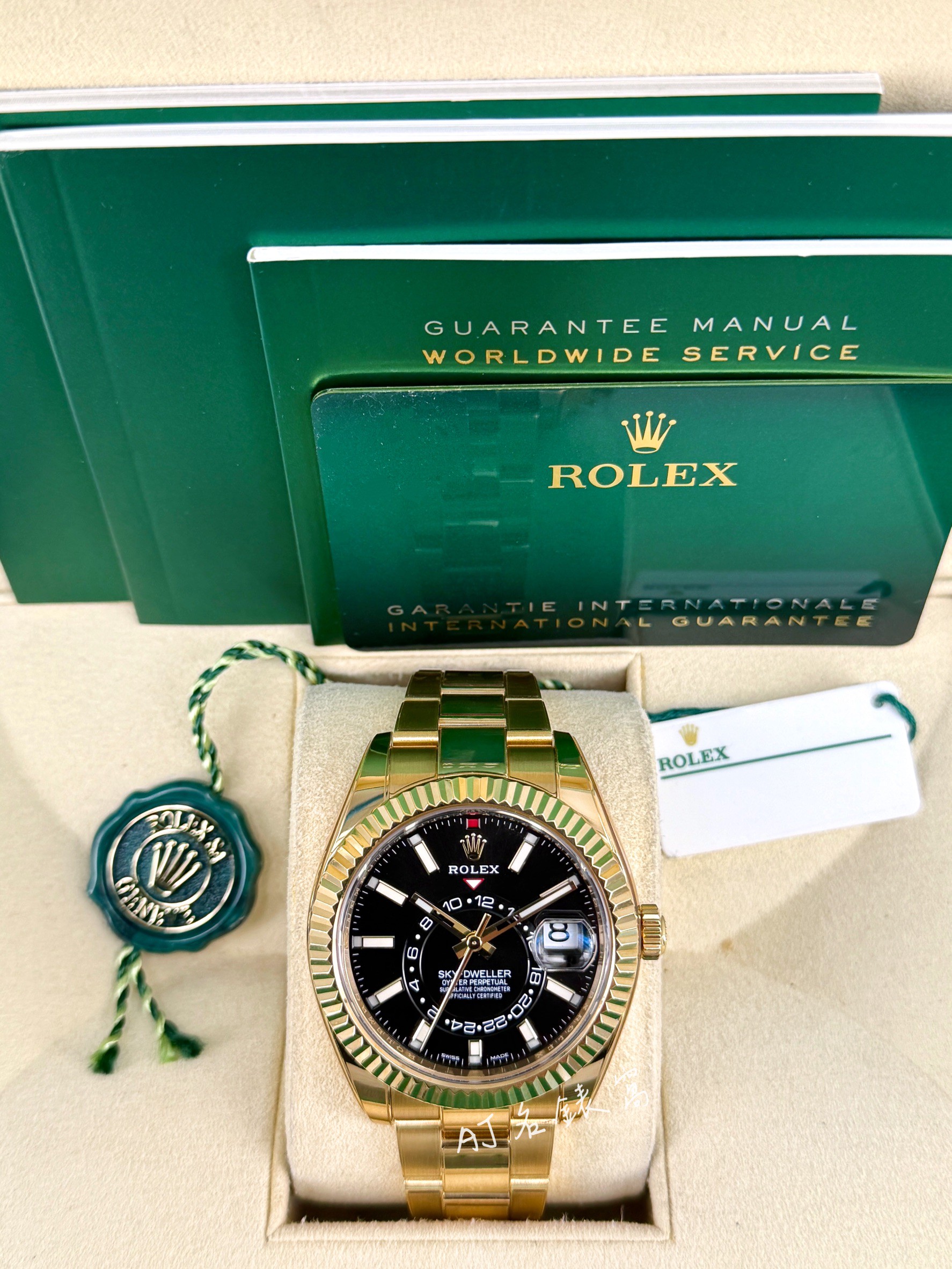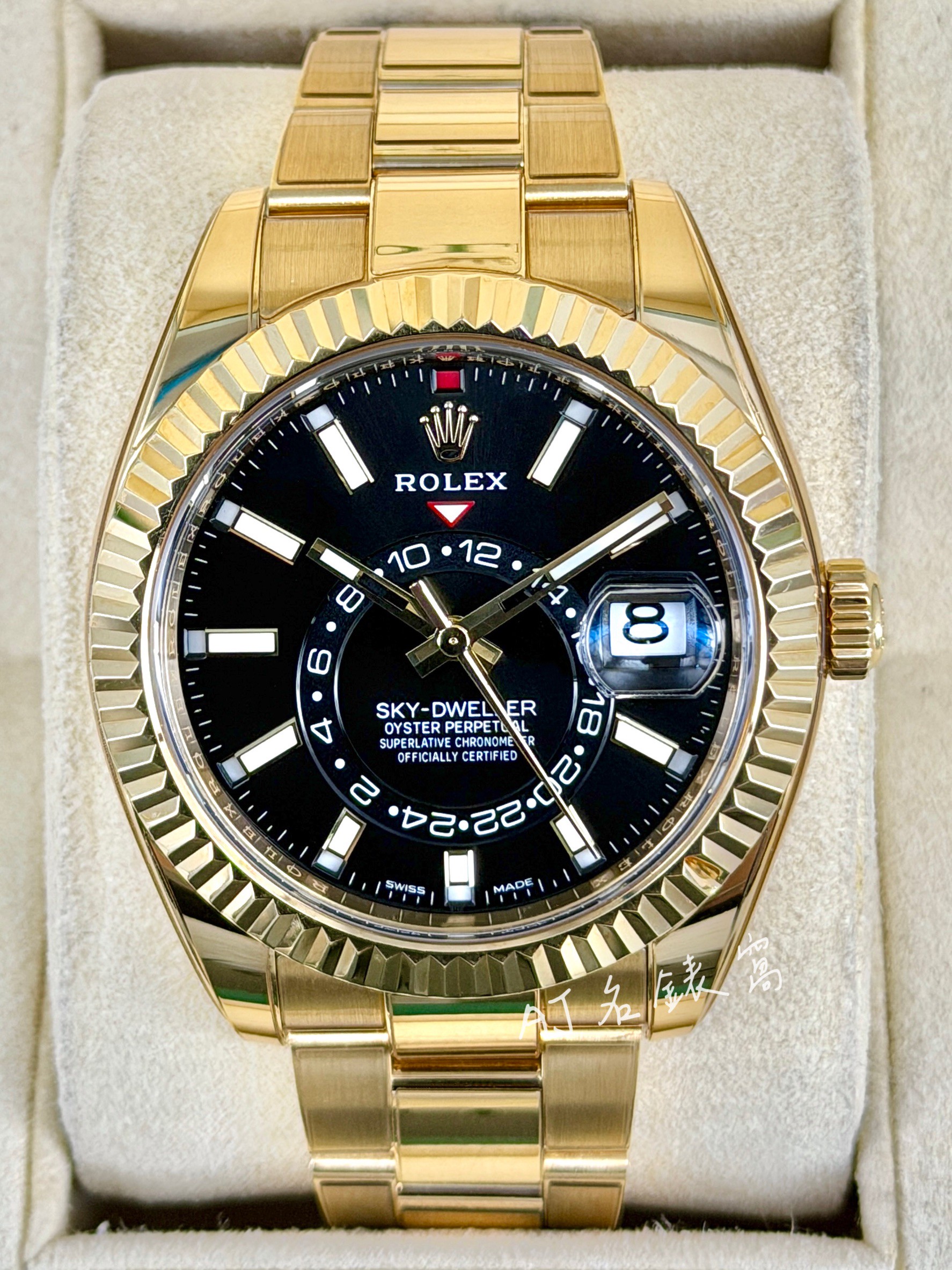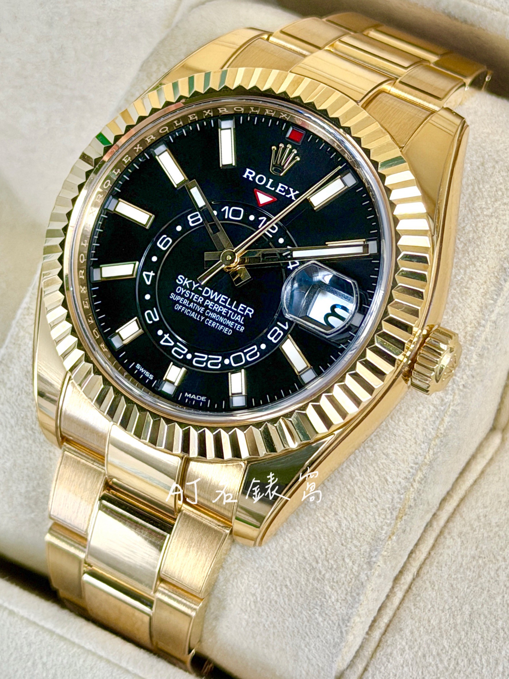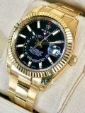 ROLEX 勞力士 Sky-Dweller 天行者 326938 黑面 黃K金材質 年曆錶 兩地時區 勞力士最複雜機芯黑色面盤 2022年保單 42mm 二手美品 已貼膜