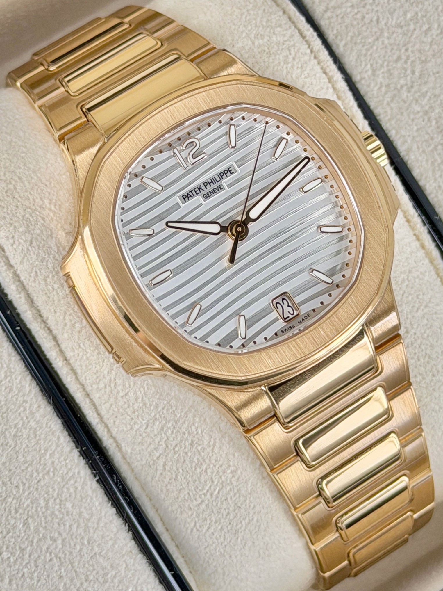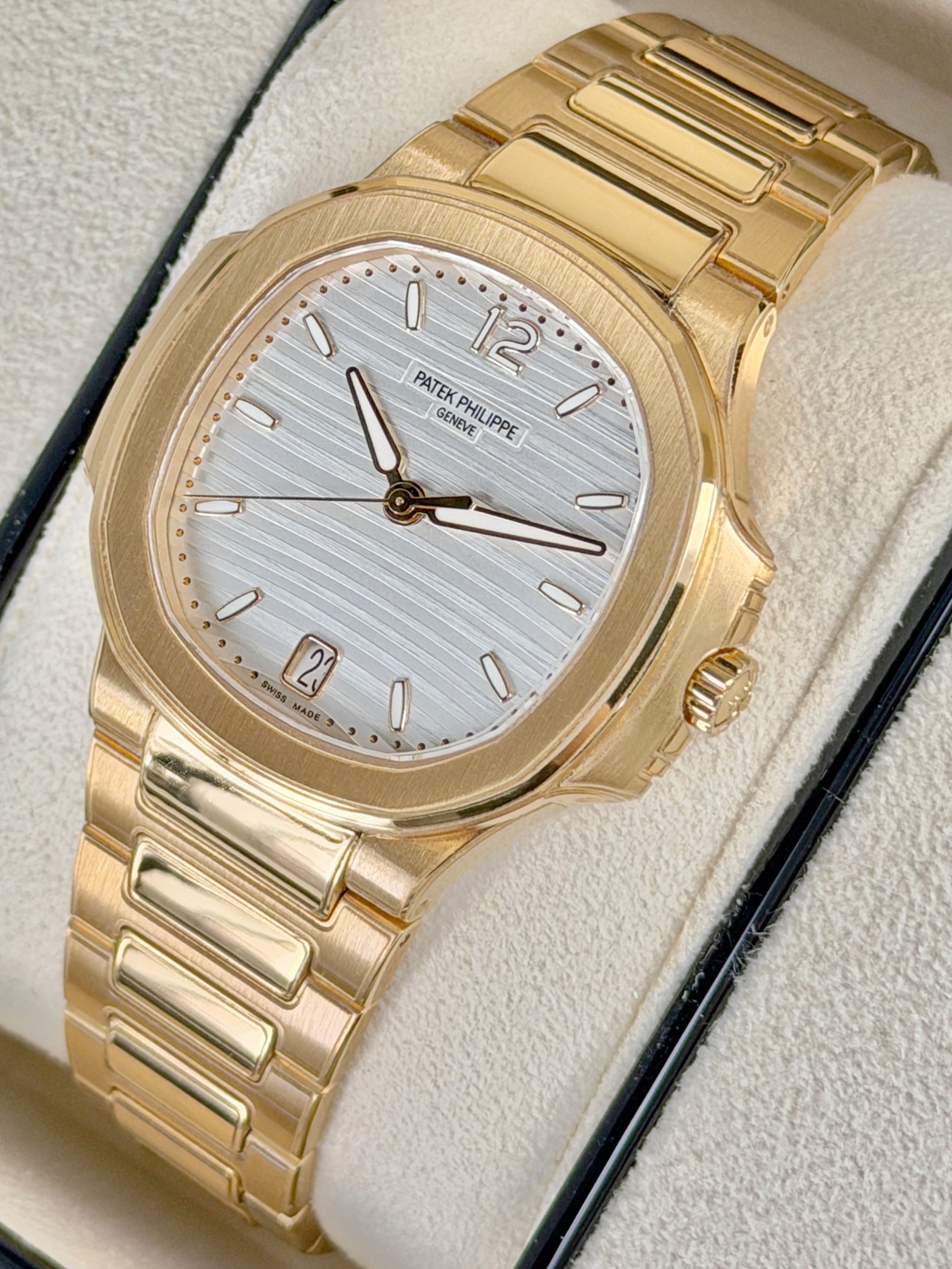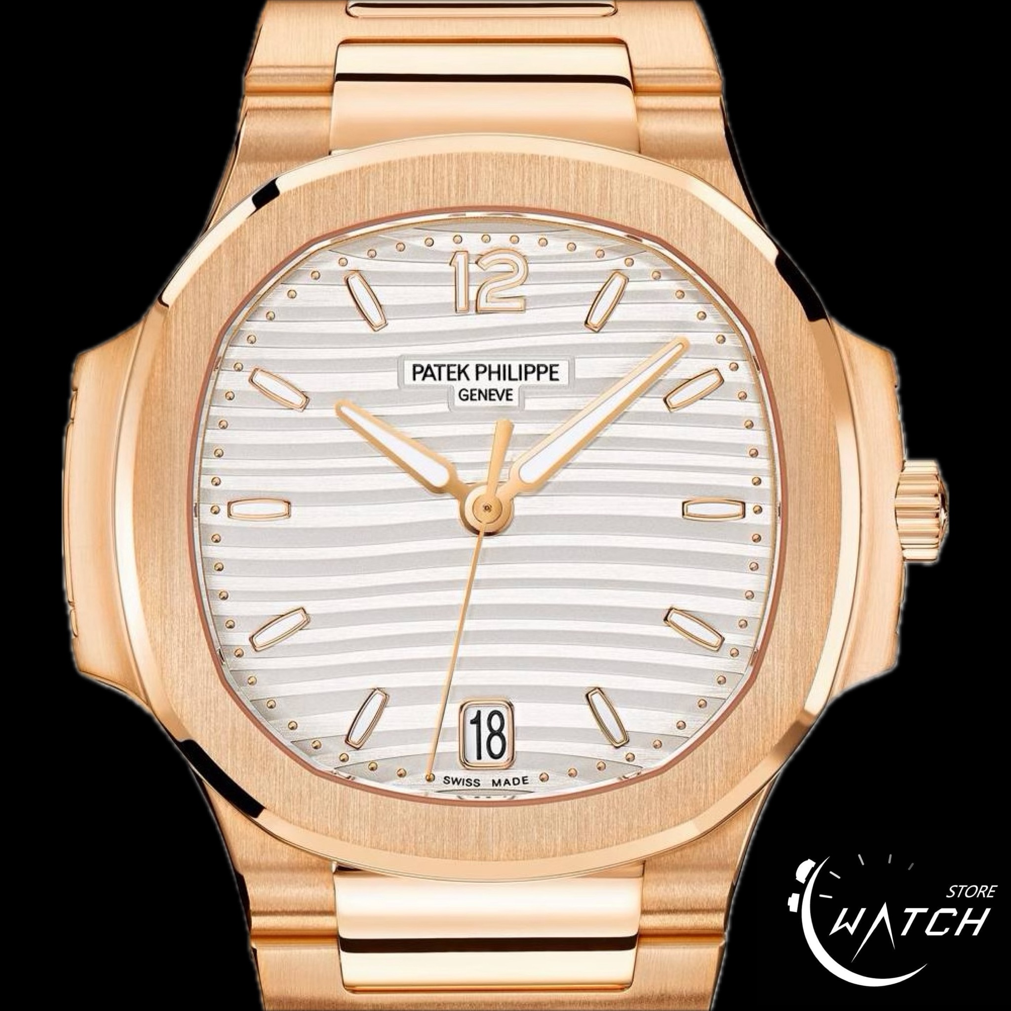 玫瑰金錶鍊。 Nautilus折疊式錶扣(蝴蝶扣) |