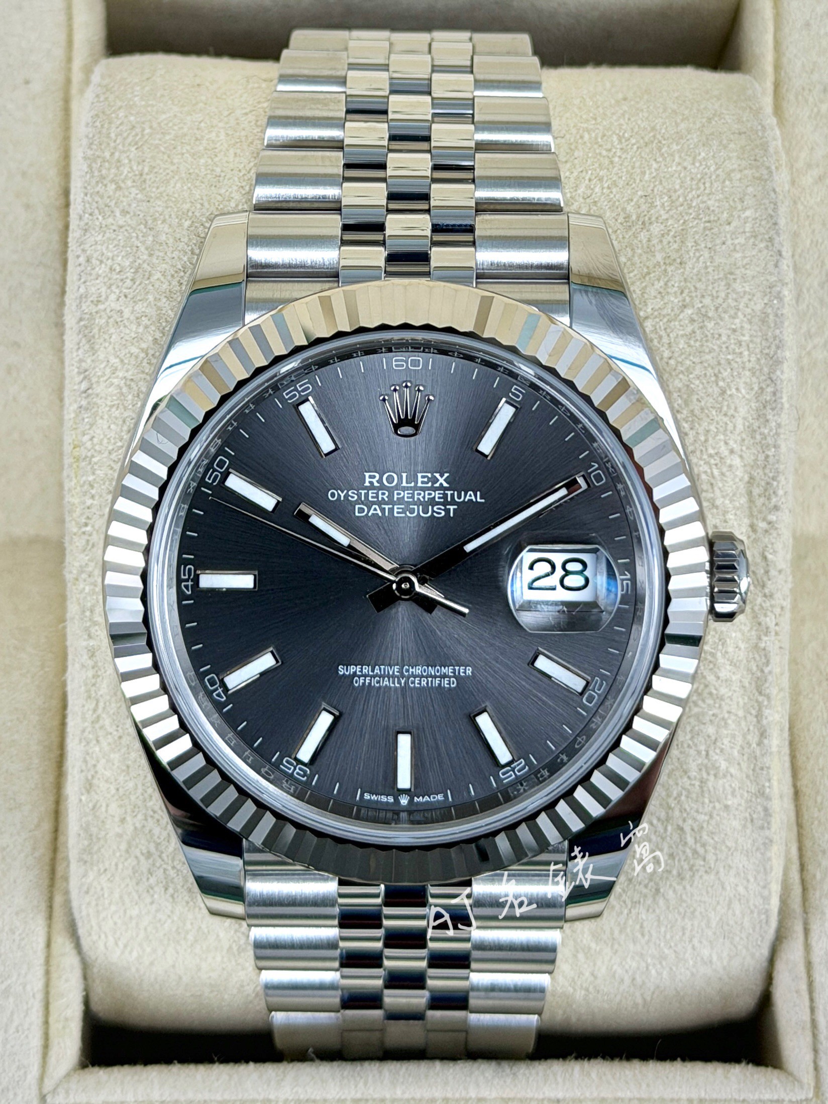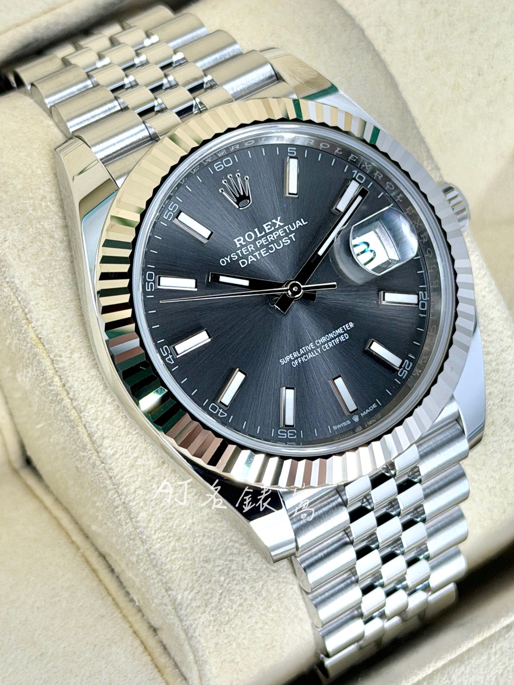 蠔式日誌型 經典 126334 不鏽鋼 18K白金框 灰色面盤