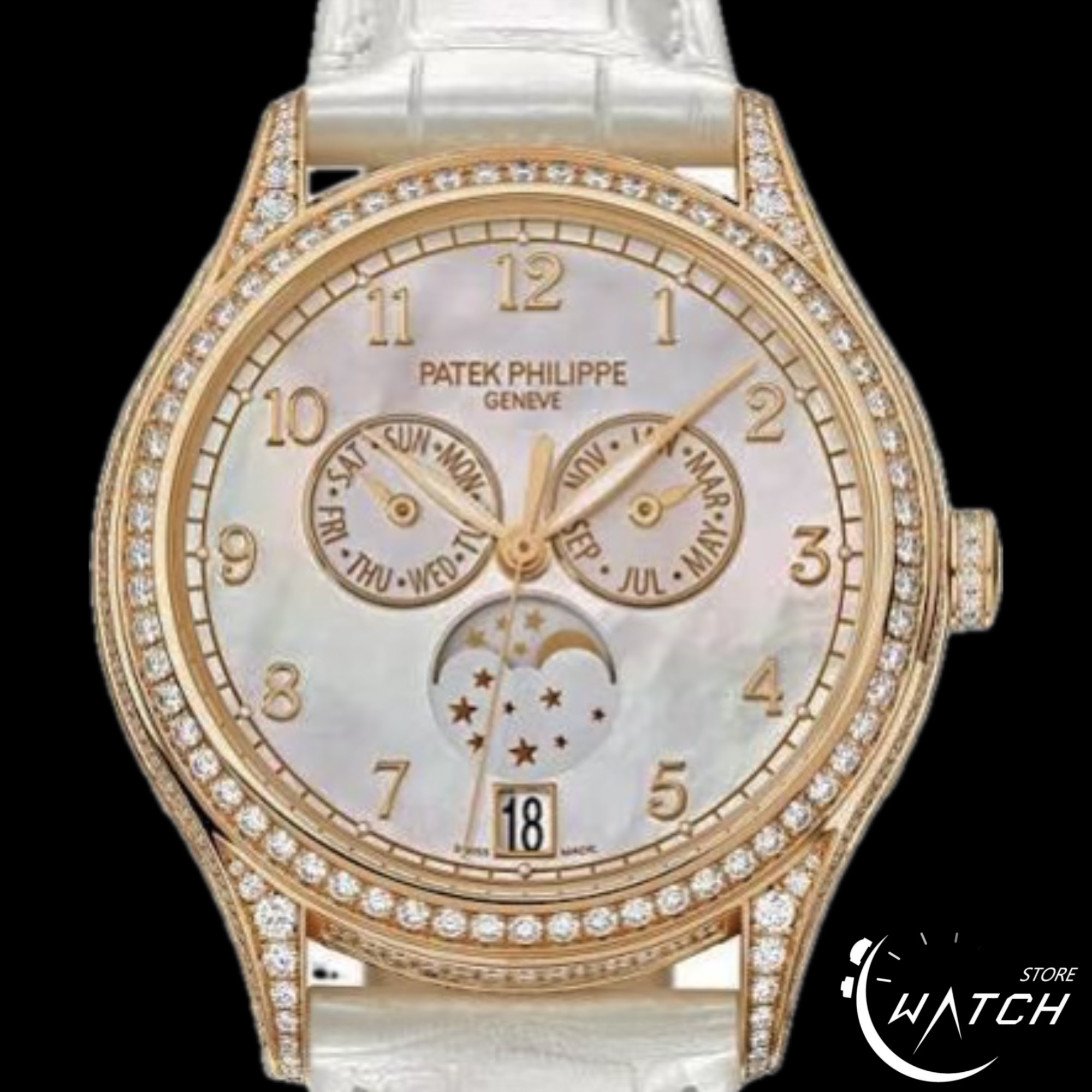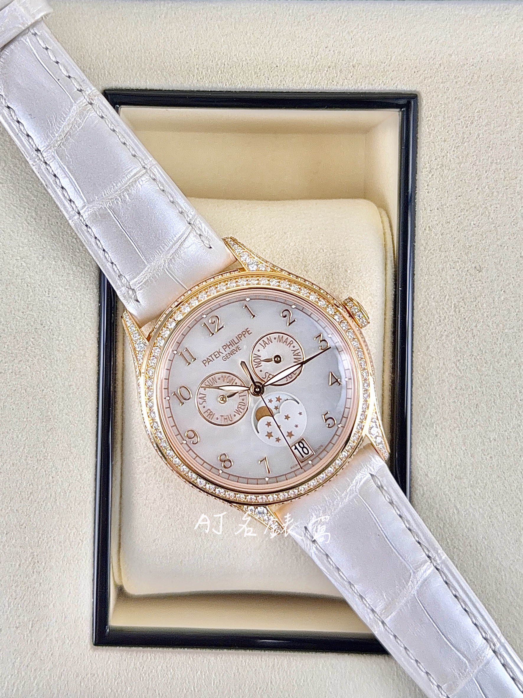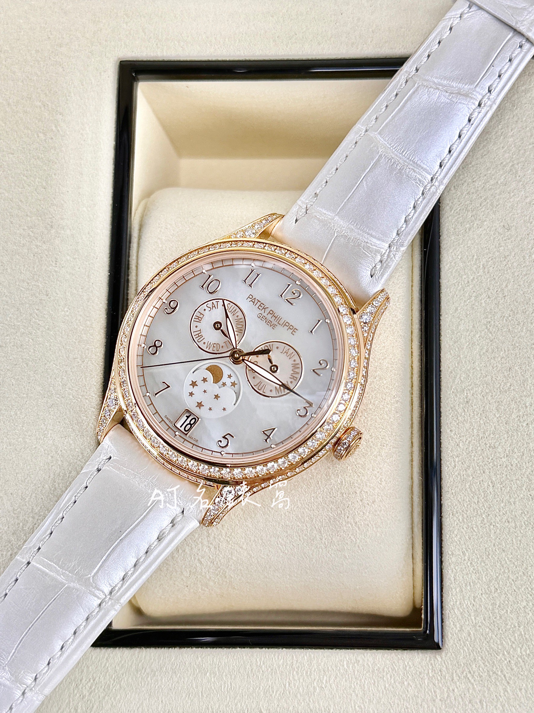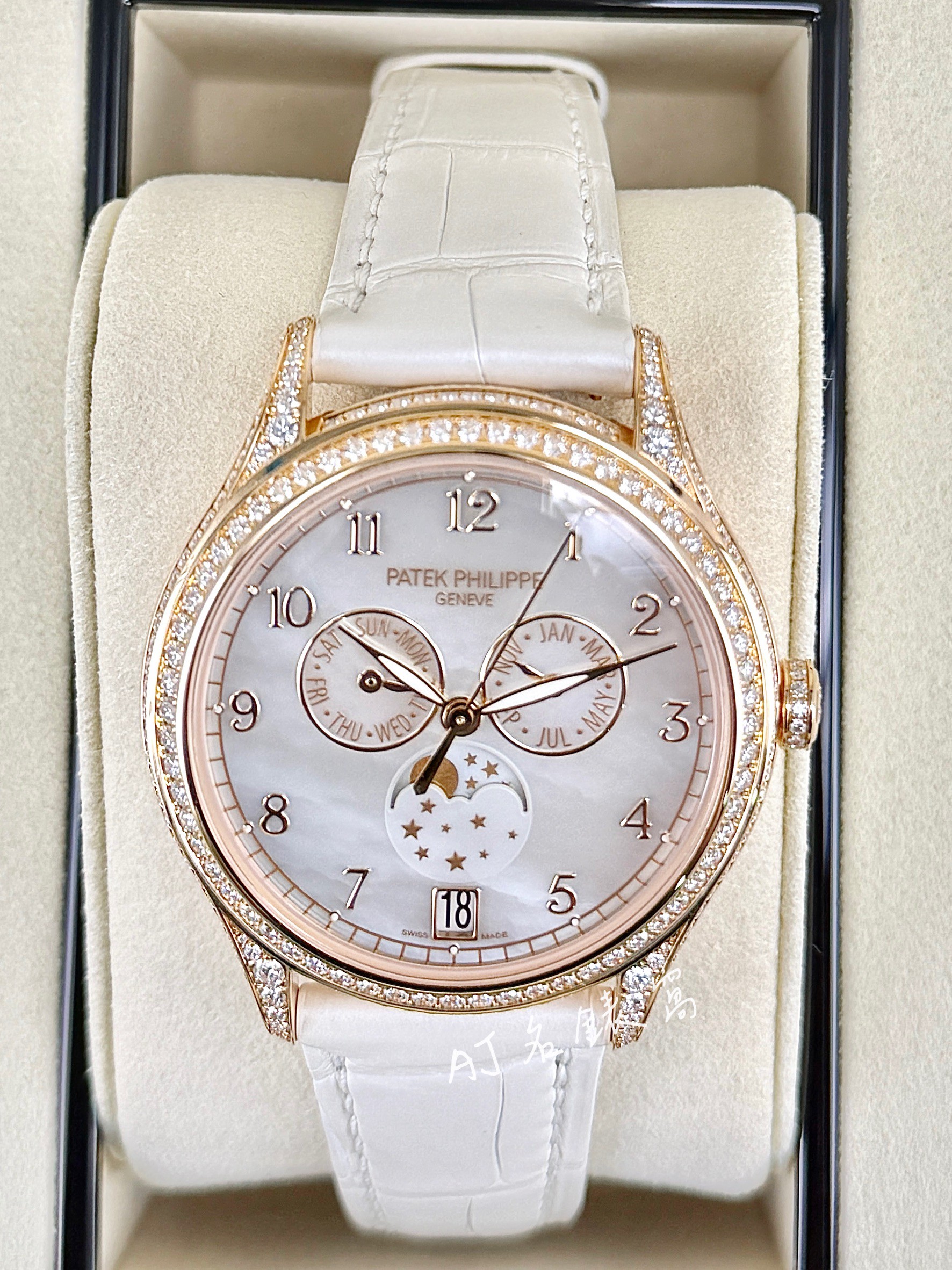 Patek philippe 百達翡麗 PP錶 18K玫瑰金材質 4948R 珍珠貝母面盤 原廠鑲鑽 年曆錶 月相盈虧 自動上鍊 38mm 2026年保單 未使用品