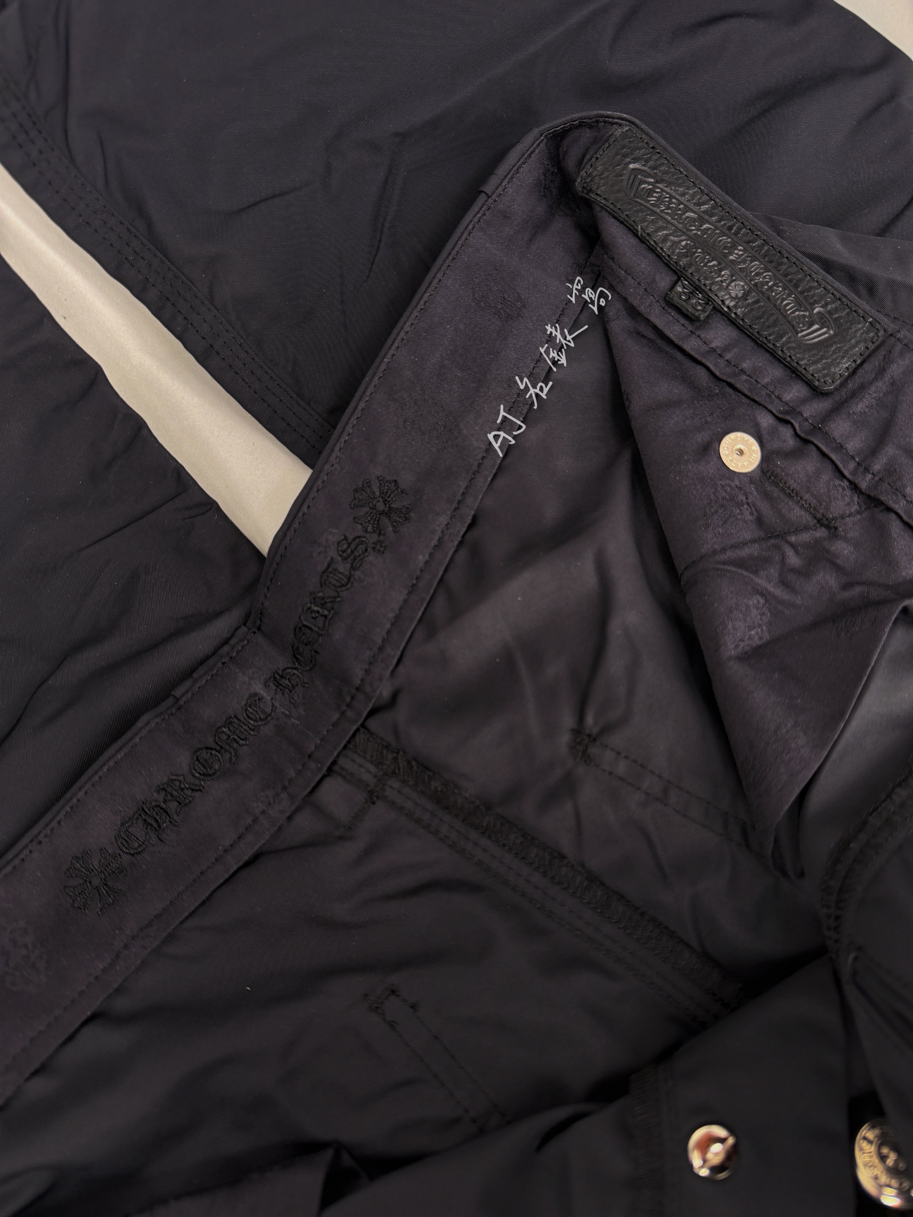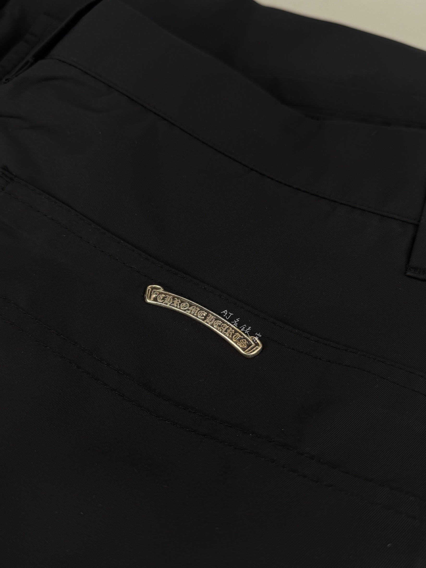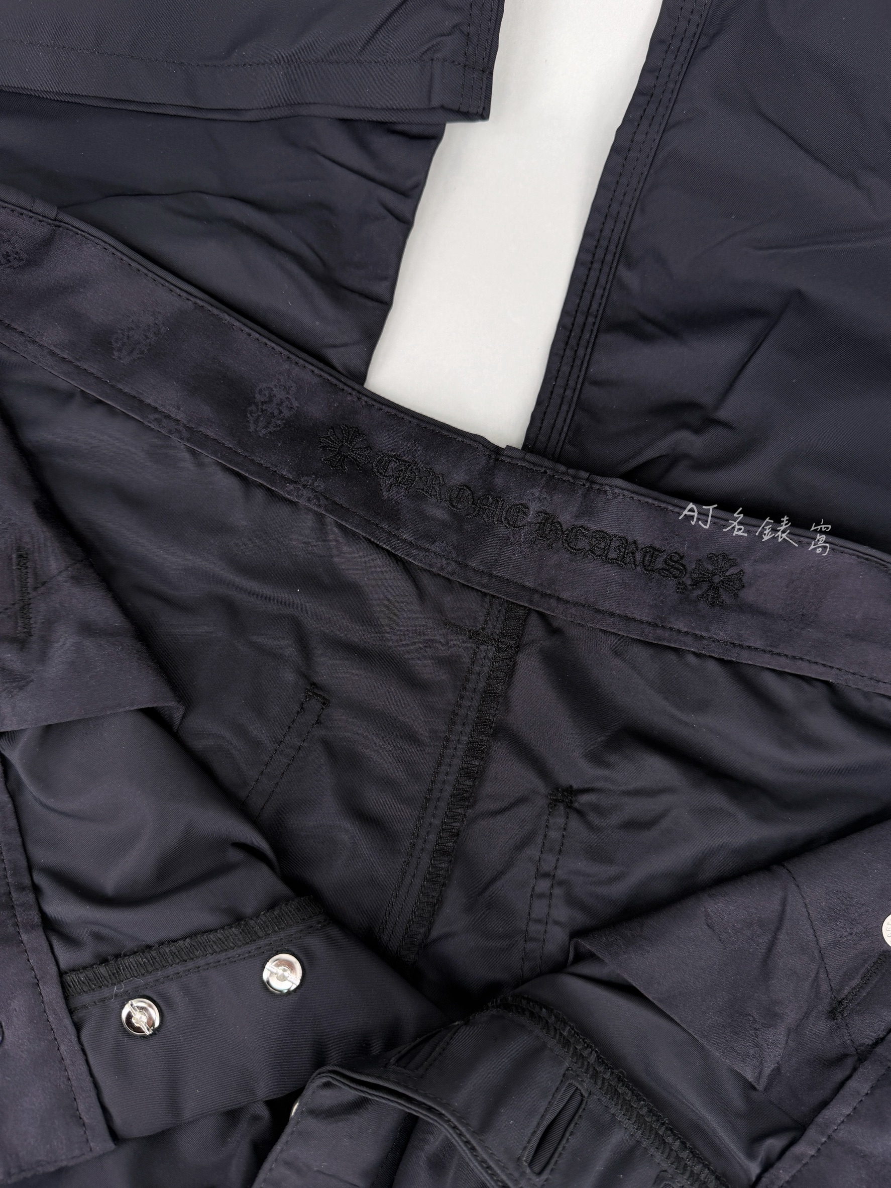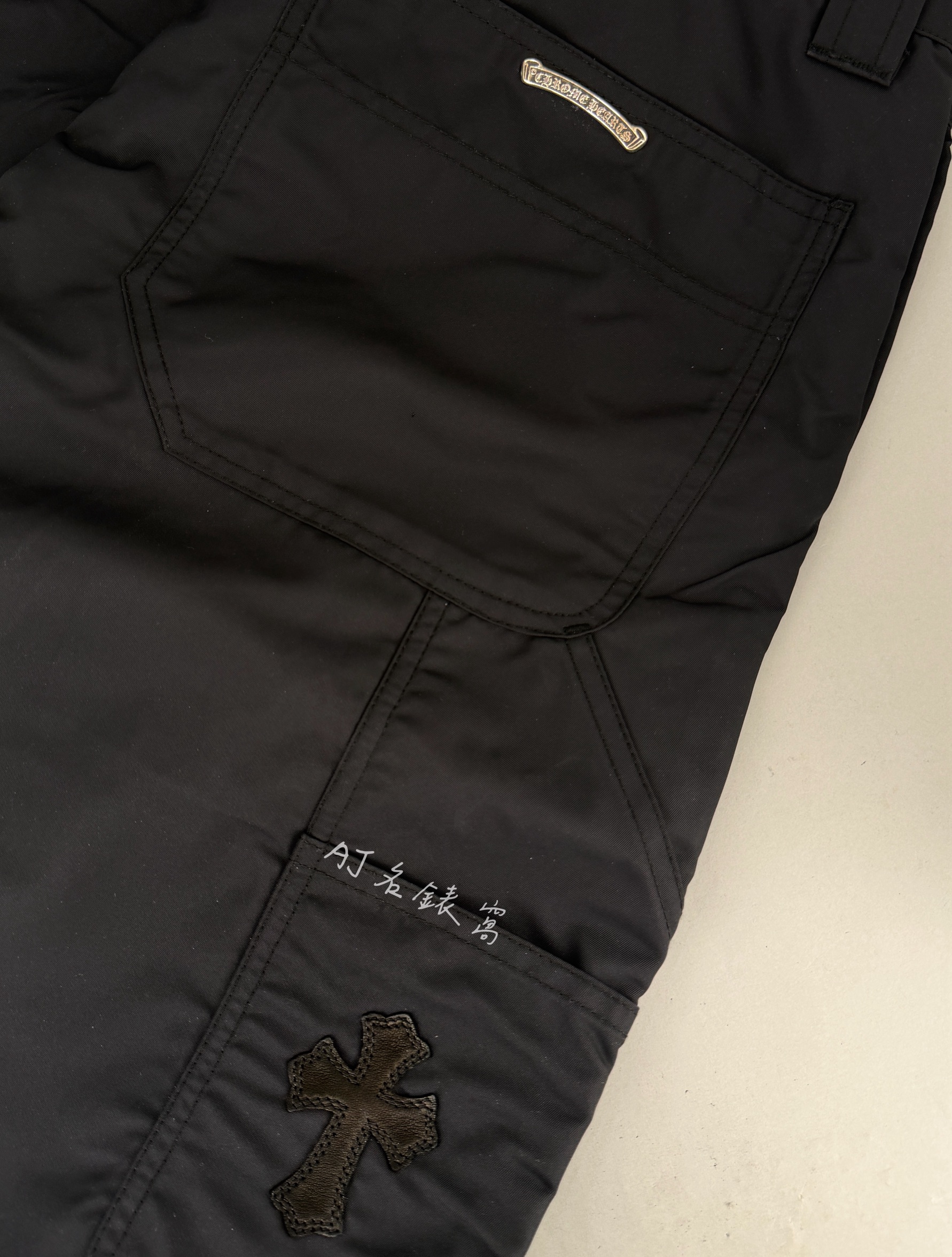 十字球扣褲子雙膝皮革尼龍黑色工裝褲