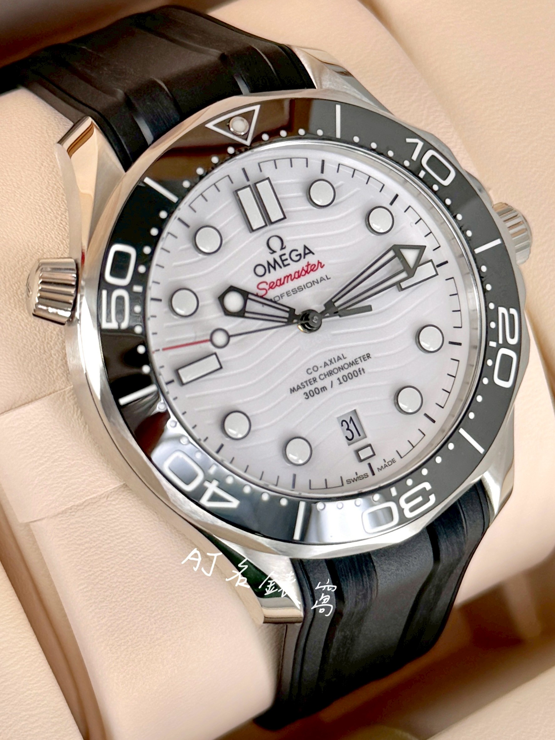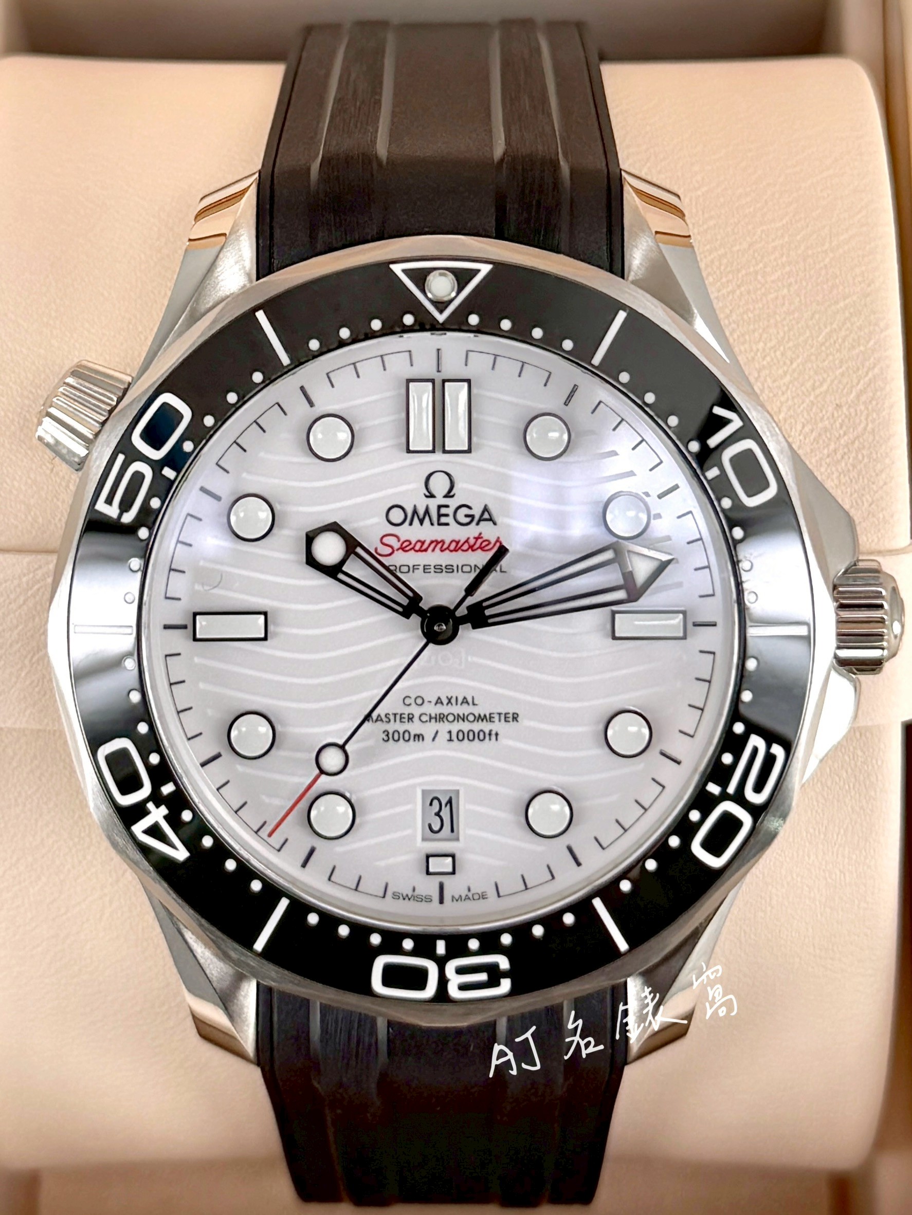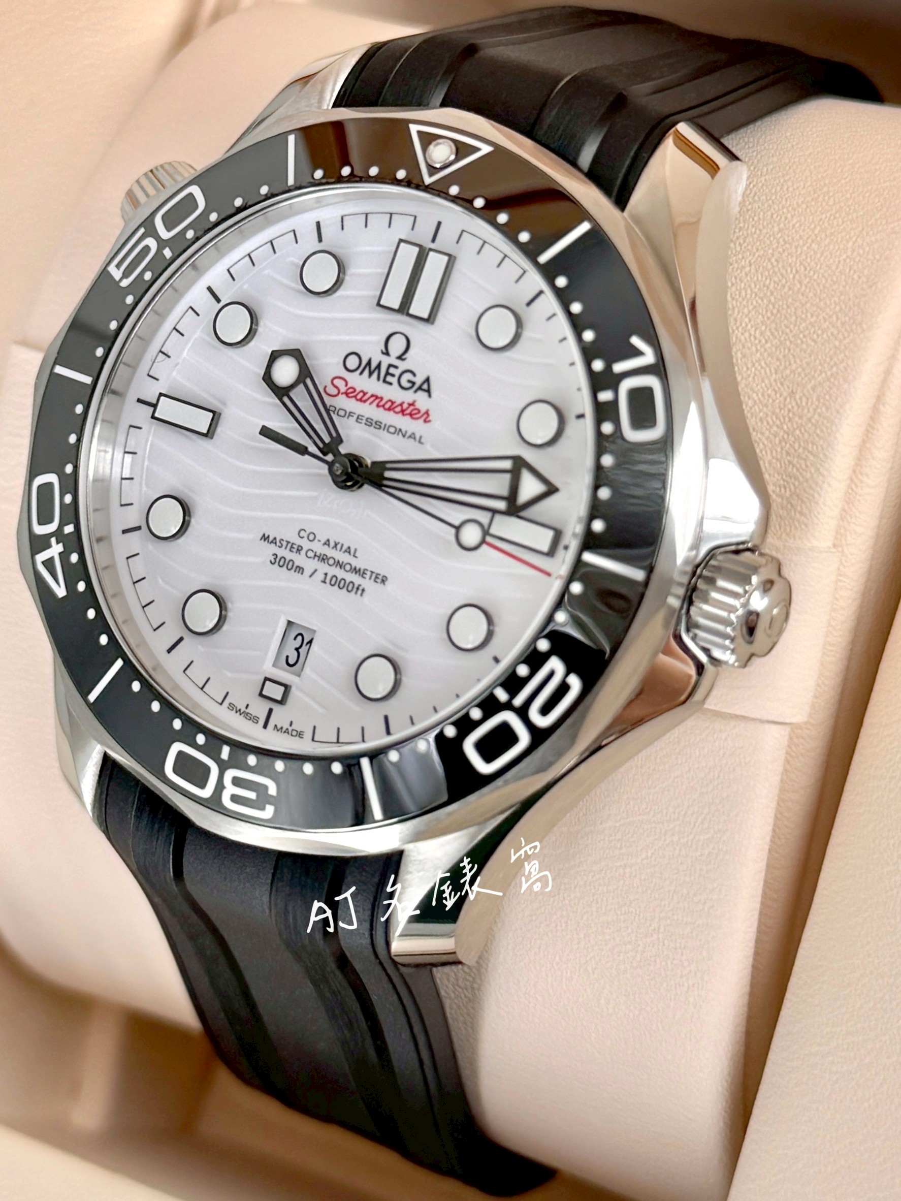 OMEGA 歐米茄 Seamaster 海馬系列 210.32.42.20.04.001 白色波浪紋陶瓷面盤 黑色陶瓷錶圈 同軸擒縱 2026年保單 二手美品 橡膠錶帶 專業潛水錶 自動上鍊 42mm