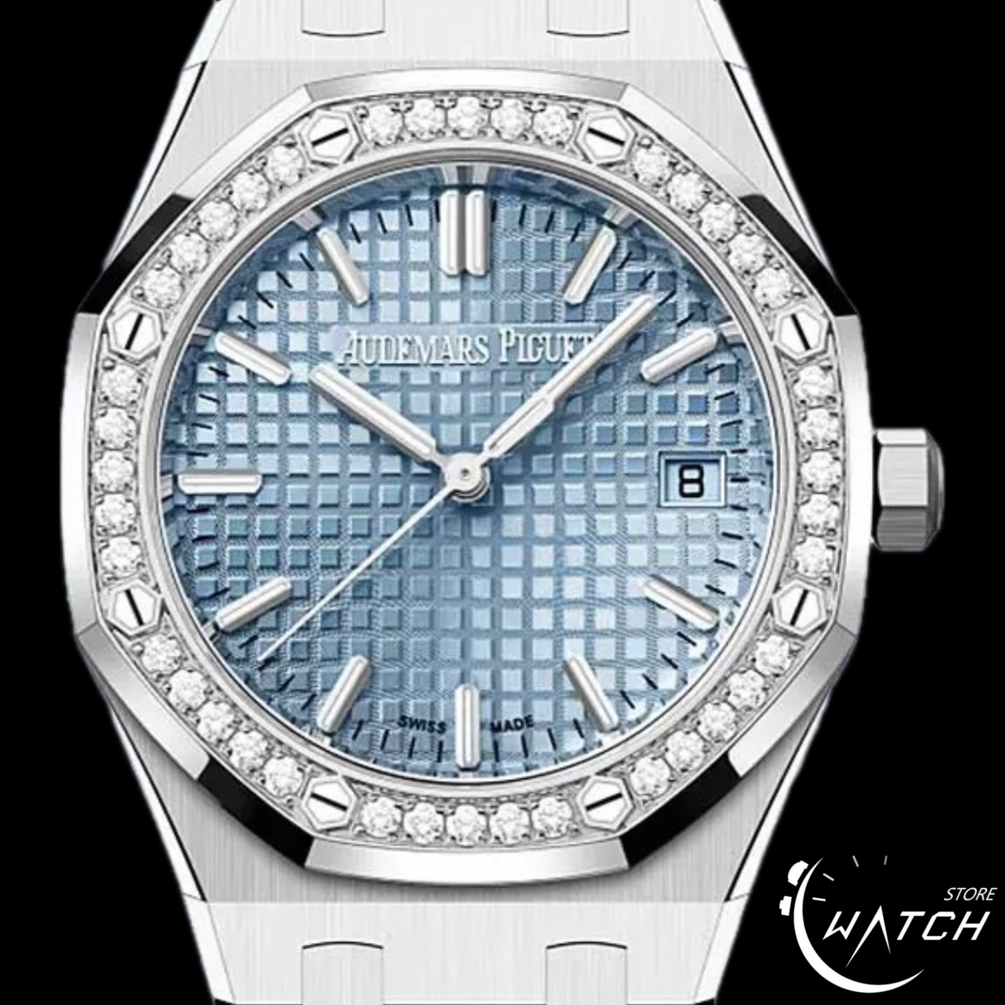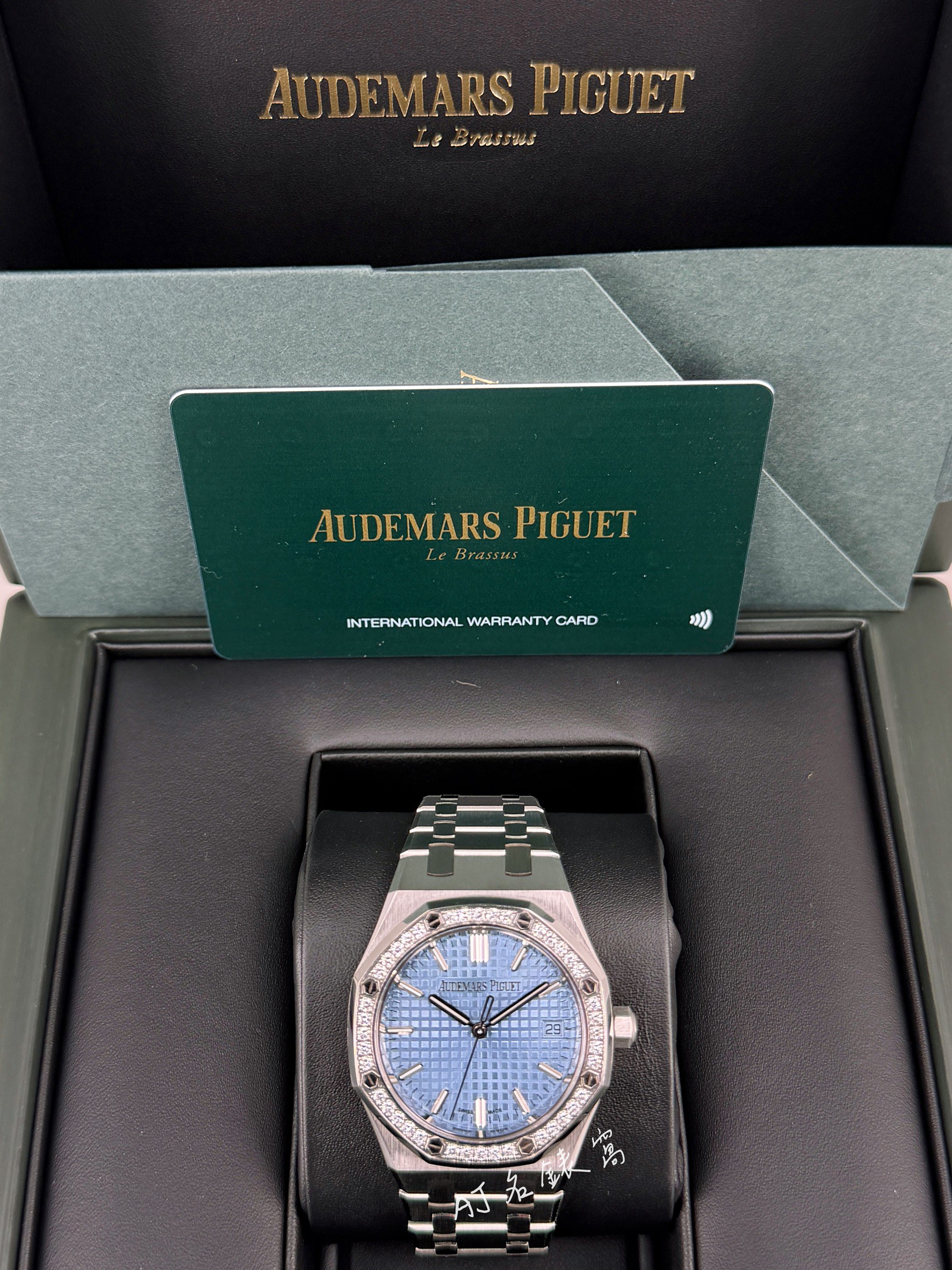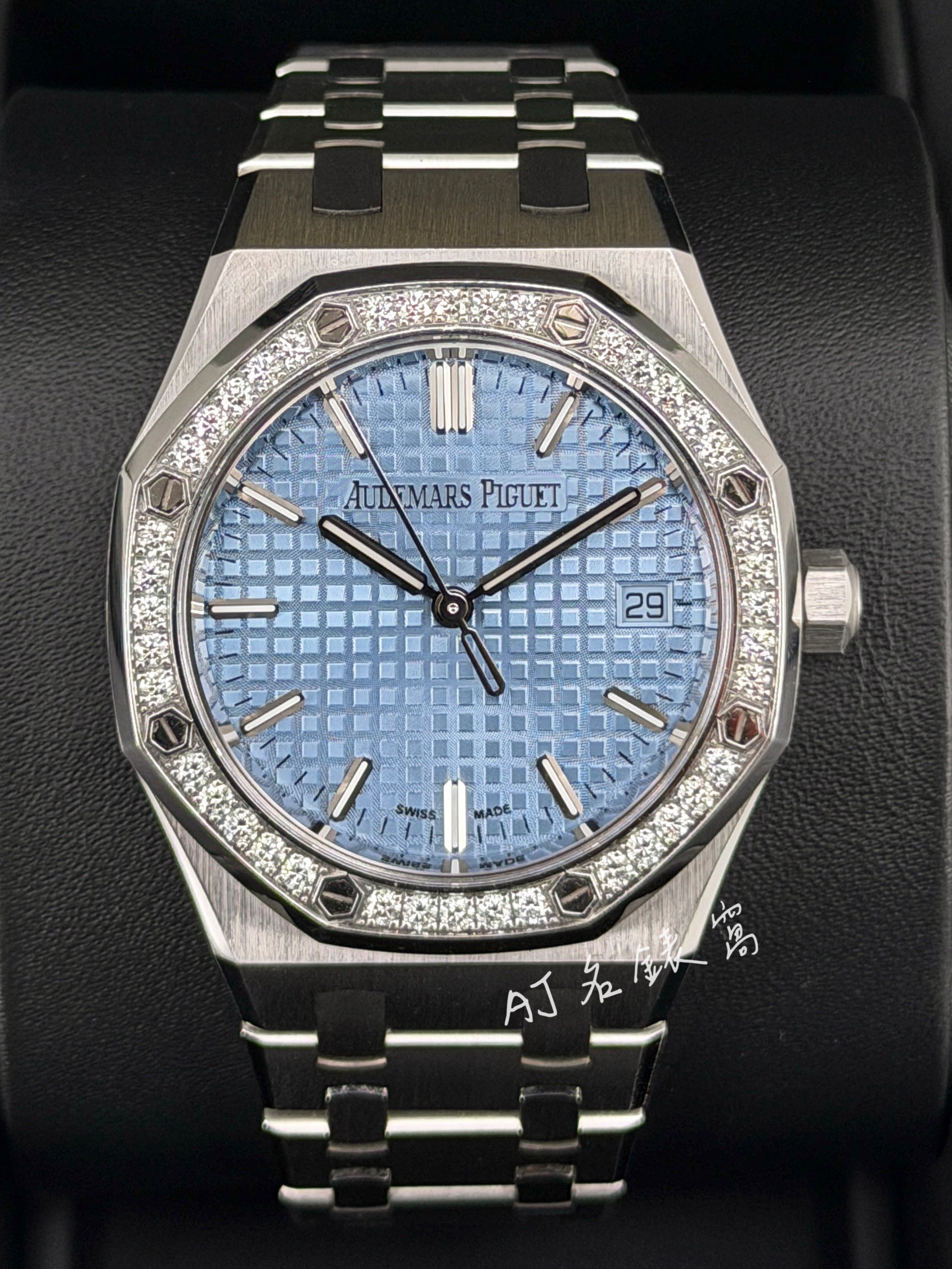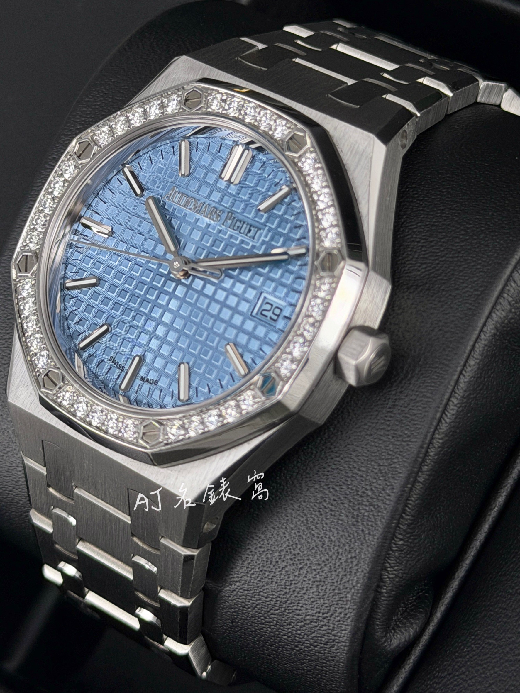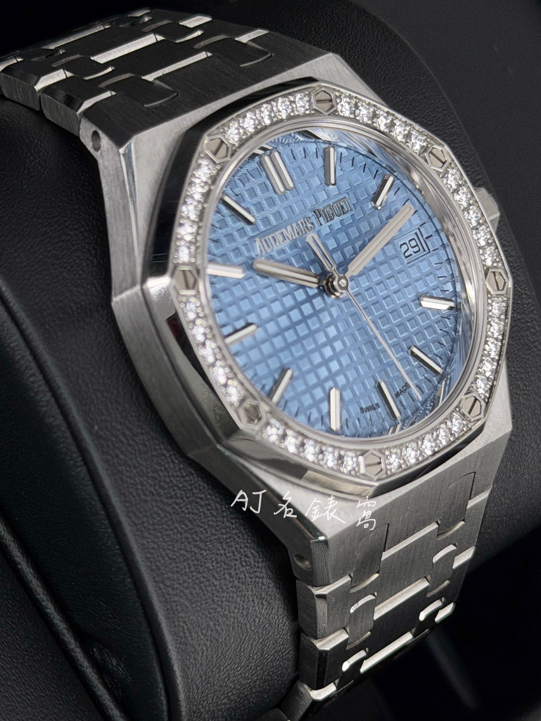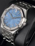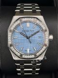 Audemars Piguet 愛彼 AP錶 Royal Oak 皇家橡樹 77451ST.ZZ.1361ST.03 冰藍色錶盤 40顆原廠鑲嵌美鑽錶圈 自動上鍊 34mm 2023年保單 二手美品